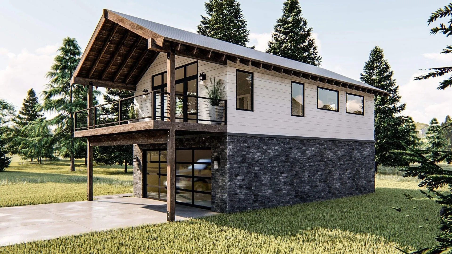 This design stands out for its intricate, super-modern exterior and efficient layout. This plan could be an ideal space for a guest suite or studio space, as well. Its thoughtful construction and building process ensures long-term durability while keeping costs manageable.
