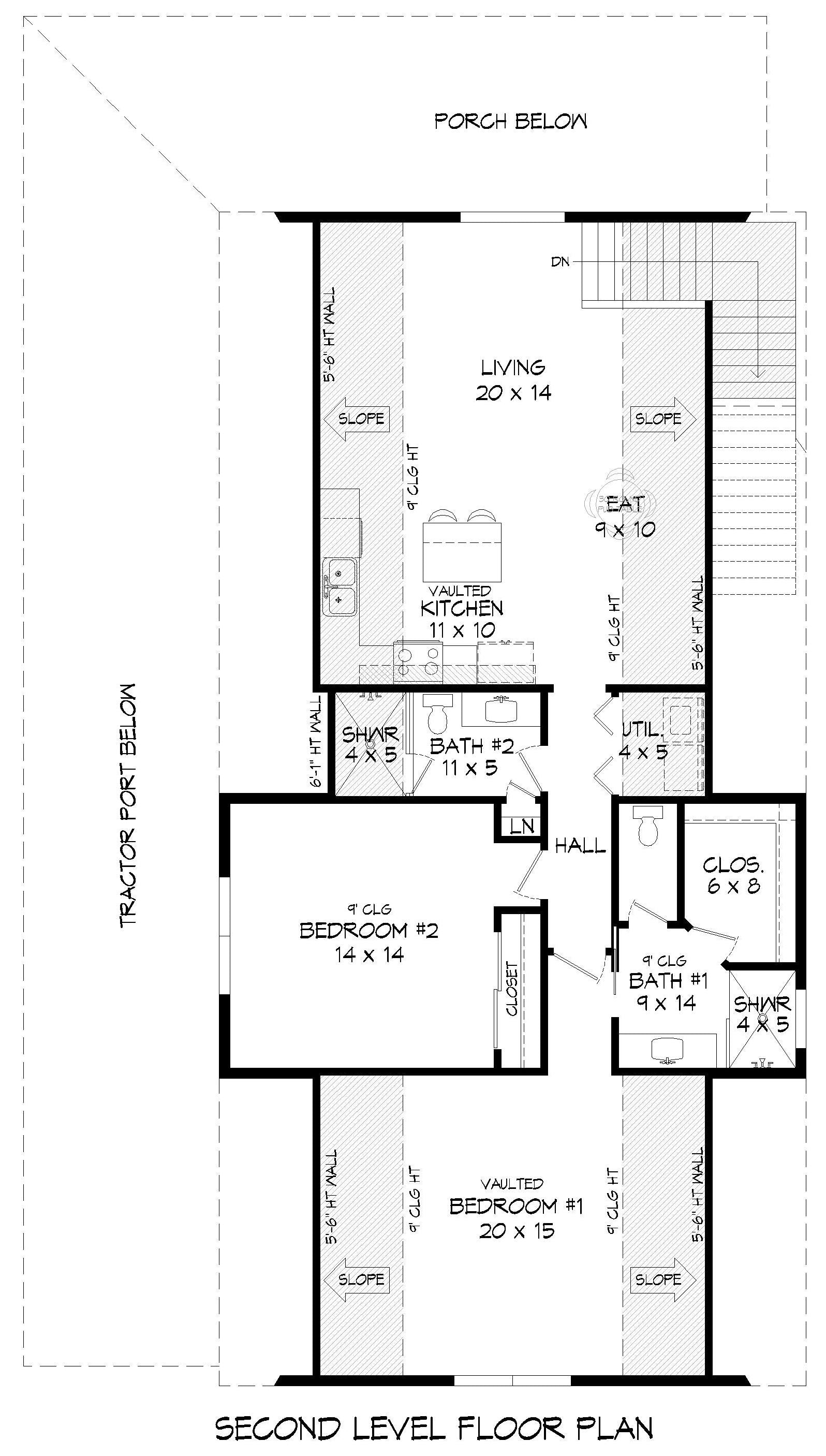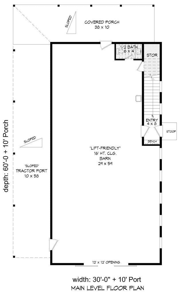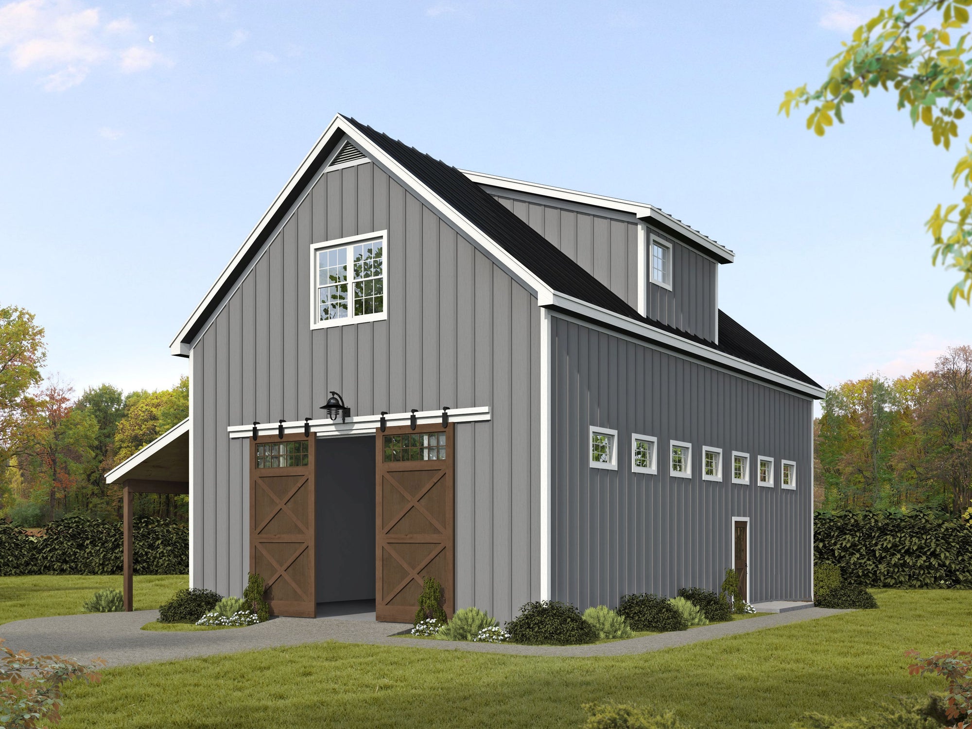 Outdoor living is just as impressive with 380 sq ft of porch space and a scenic rear deck perfect for relaxing or entertaining. Below, a 1,620 sq ft barn-style garage with a side load and an additional 580 sq ft tractor port provide generous room for equipment, vehicles, or hobby space. The home stands tall at 32'10'' with a footprint of 40' wide by 70' deep, making it ideal for those who appreciate vertical volume, rural flair, and practical luxury in one bold package.