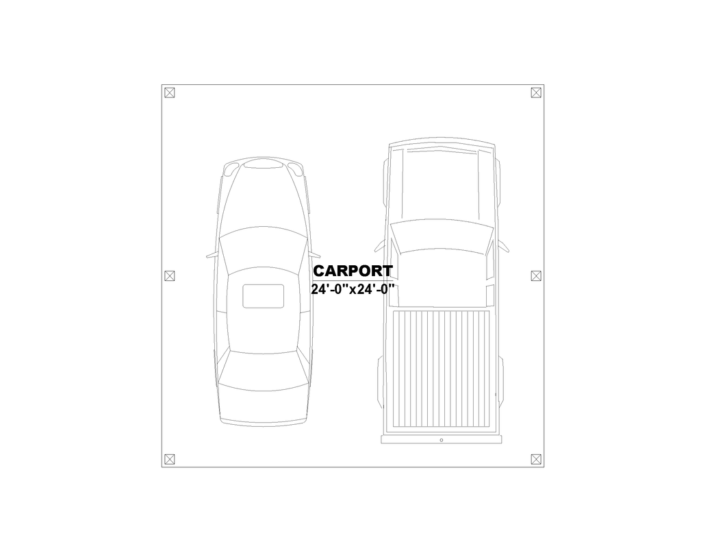 This 576 sq ft two-car carport plan offers a simple, practical solution for protecting your vehicles from the elements. Designed on a durable slab foundation, the structure provides wide, open parking bays that ensure effortless maneuverability for cars, trucks, or recreational vehicles. Its clean 24' by 24' footprint fits comfortably on most properties, making it a versatile addition to residential lots, rentals, or recreational spaces.