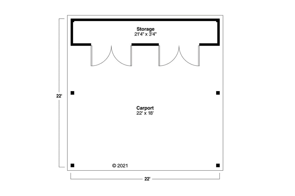 Built on a durable slab foundation, this compact garage features 2x4 wall framing and truss roof construction with a gentle 4:12 pitch. The carport-style layout allows easy front-load access for everyday convenience. With an 8-foot ceiling height and 88 square feet of dedicated storage, its 22-foot by 22-foot footprint makes this structure a practical, functional, and visually appealing addition to any property.