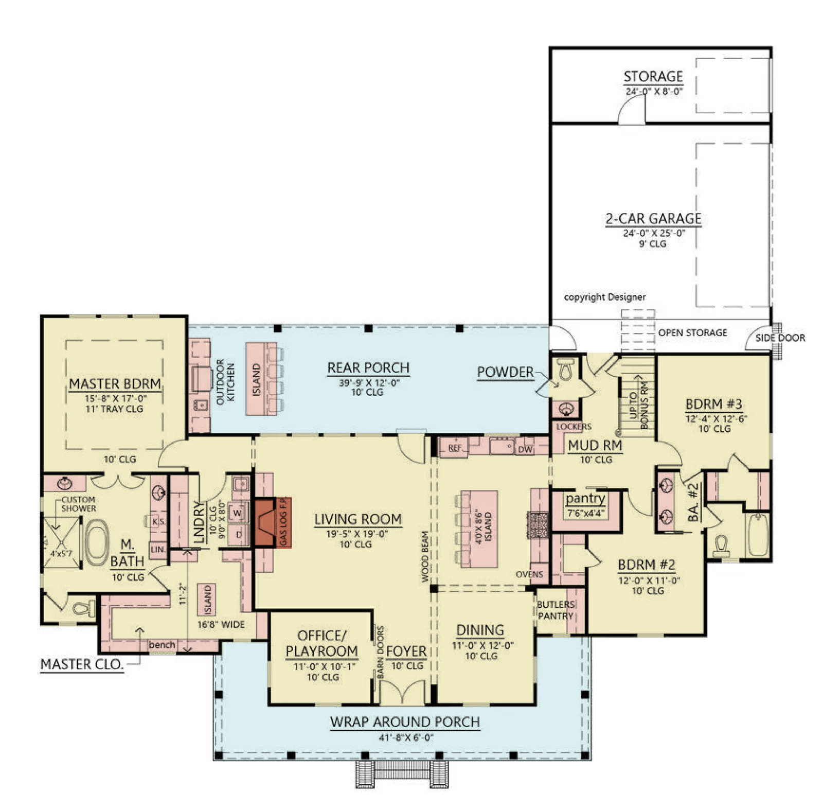 Outdoor living is an essential part of any great house plan, and this 2400 sq ft design includes inviting spaces to enjoy the outdoors. A covered front porch welcomes guests, while a spacious covered rear porch is perfect for relaxing or entertaining. The porch design can be tailored to include features like outdoor kitchens, fireplaces, or built-in seating, enhancing your outdoor experience. Outdoor features such as patios or porches can be constructed on grade or off grade, depending on your lot's terrain and the existing ground level. Landscaping options are also customizable, allowing you to add gardens, walkways, or water features that complement your home’s style. With a variety of outdoor spaces and landscaping options to choose from, you can find the perfect setup to match your vision and make the most of your lot.