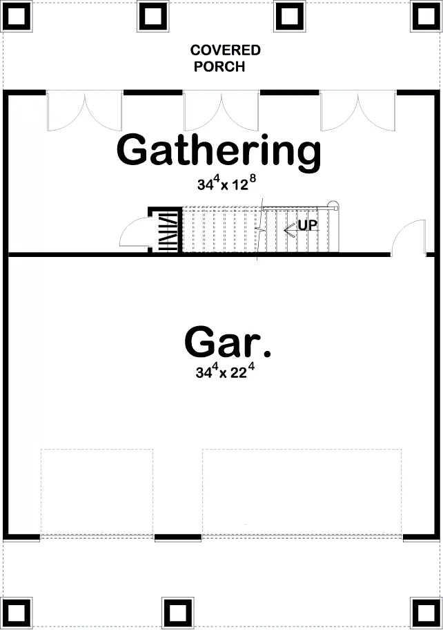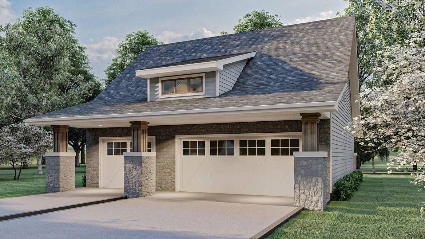 This inviting house plan features a total living area of 1,095 sq ft, with a well-utilized first floor of 455 sq ft and a second floor offering 640 sq ft. The design includes a spacious garage (805 sq ft) with room for three vehicles, loading from the front for convenience. Ideal for a single occupant or couple, the home offers one bedroom and one bathroom, making it a practical choice for comfortable living.
