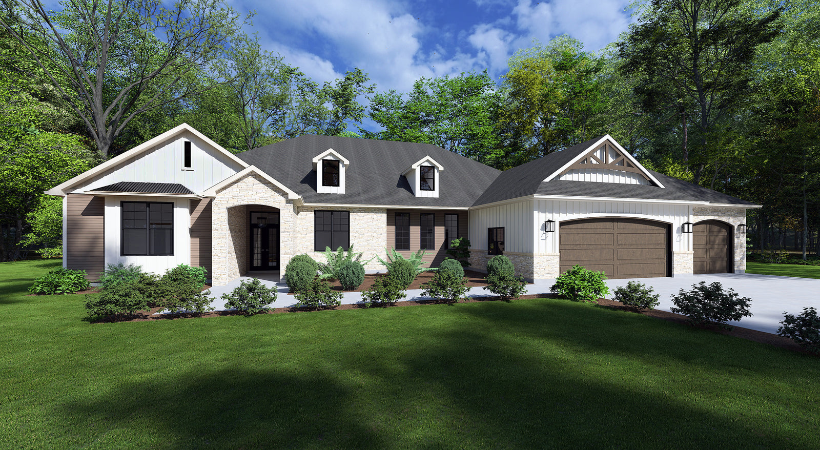 Don't confuse modern ranch house designs with the cookie-cutter versions from the 1970s. Today's ranch floor plans include gorgeous open concept spaces where kitchen, dining, and living areas blend together.