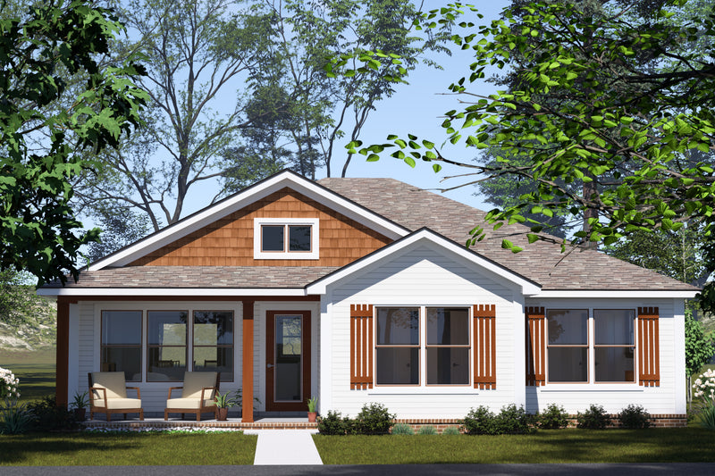 The master suite features a double vanity bath and a generous walk-in closet, while two additional bedrooms are smartly positioned in a split-bedroom layout for added privacy. With a covered front porch, first-floor laundry, and thoughtful touches like volume ceilings and ample storage, this home balances style, comfort, and functionality in a compact footprint.