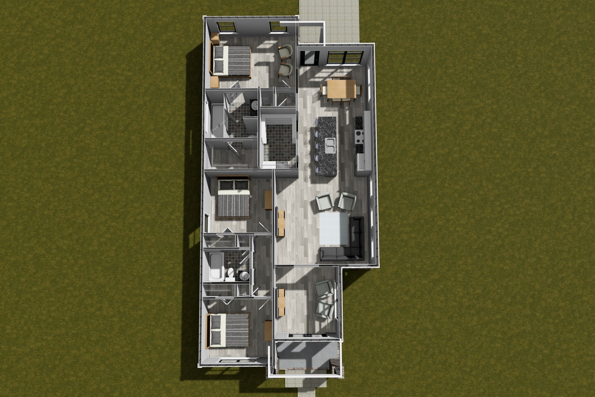 A complete set of working drawings delivered in digital PDF format. This option comes with a license to build ONE home and includes a copyright release for printing unlimited sets of plans and making modifications.