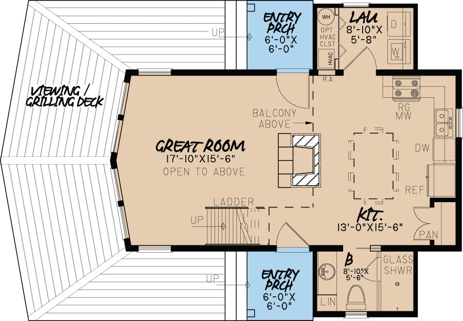 HVAC and plumbing drawings are not included. Your mechanical and plumbing subcontractors will determine the best layout for your site. Local HVAC codes, climatic requirements and commonly used systems vary throughout the country. The direction of how water flow will enter the home vary from case to case. For this reason, it is impossible to provide universal plans.