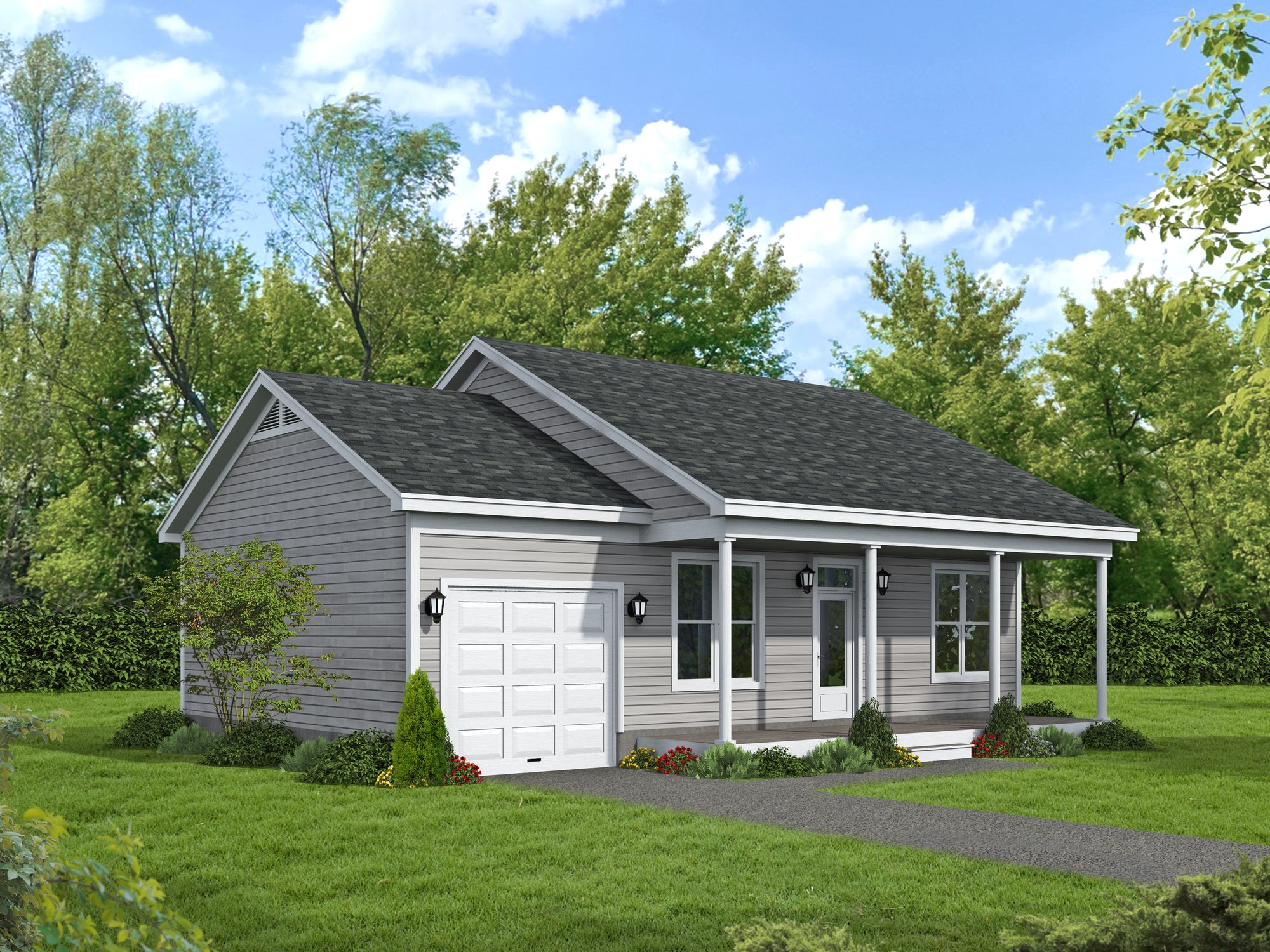 The home's welcoming exterior includes a large 168-square-foot covered front porch and a 108-square-foot rear porch—perfect for relaxing mornings or evening unwinding. A 312-square-foot attached front-load garage offers secure parking and extra storage, complemented by an additional 60 square feet of built-in storage space. With its timeless charm, thoughtful layout, and classic 2x4 framing on a crawl space foundation, this home delivers big comfort in a smart, efficient footprint.