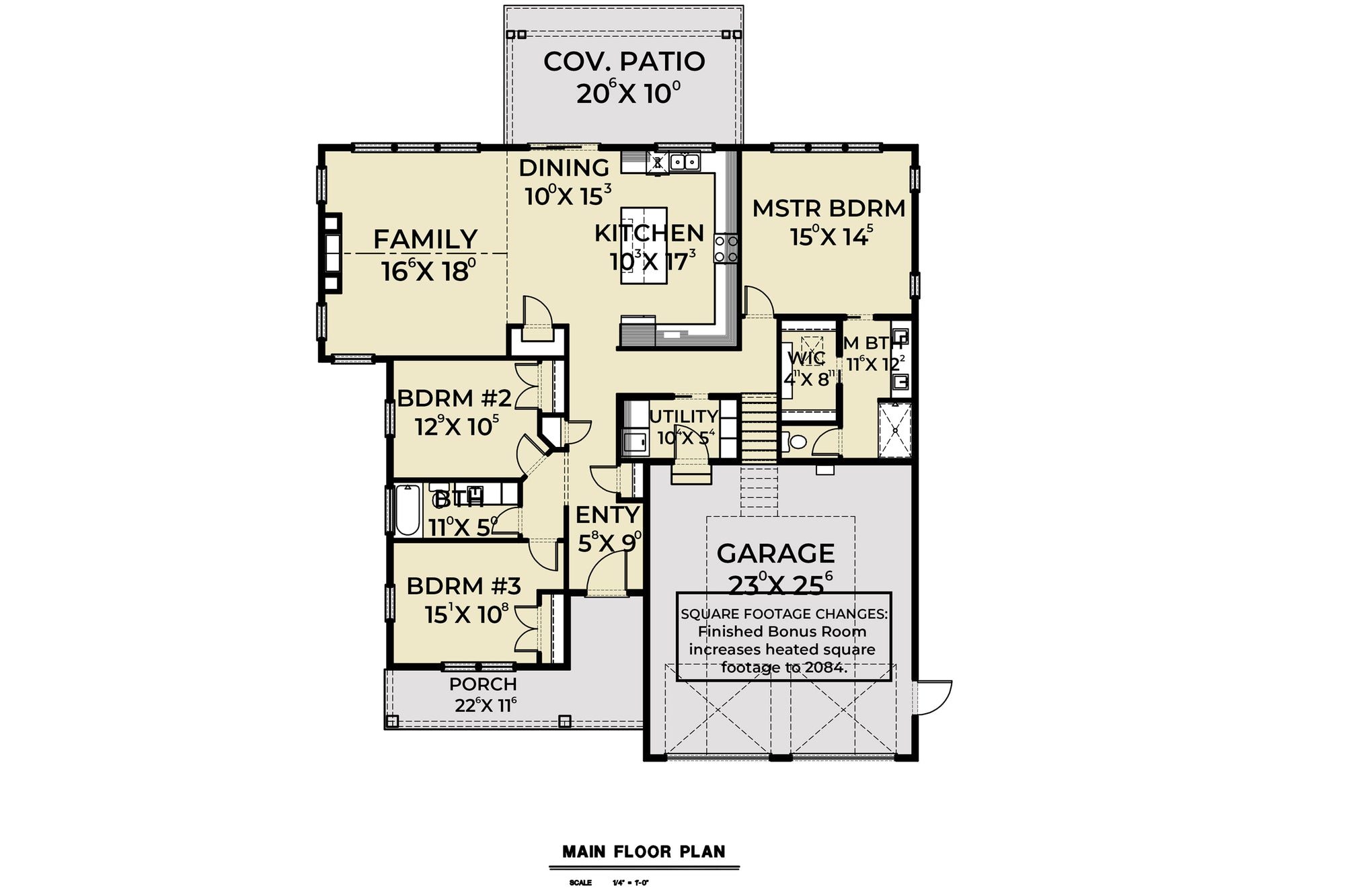 Built on a crawl space foundation with durable 2x6 wall framing and efficient truss roof framing, this home is both solid and stylish. An optional 300 sq ft bonus room offers even more flexibility—perfect for a playroom, office, or guest space. The covered patio off the rear provides a peaceful place to relax outdoors, while the 619 sq ft front-load garage adds convenience. With its thoughtful layout, 9-foot ceilings, and balance of comfort and practicality, this plan is ready to fit your lifestyle.