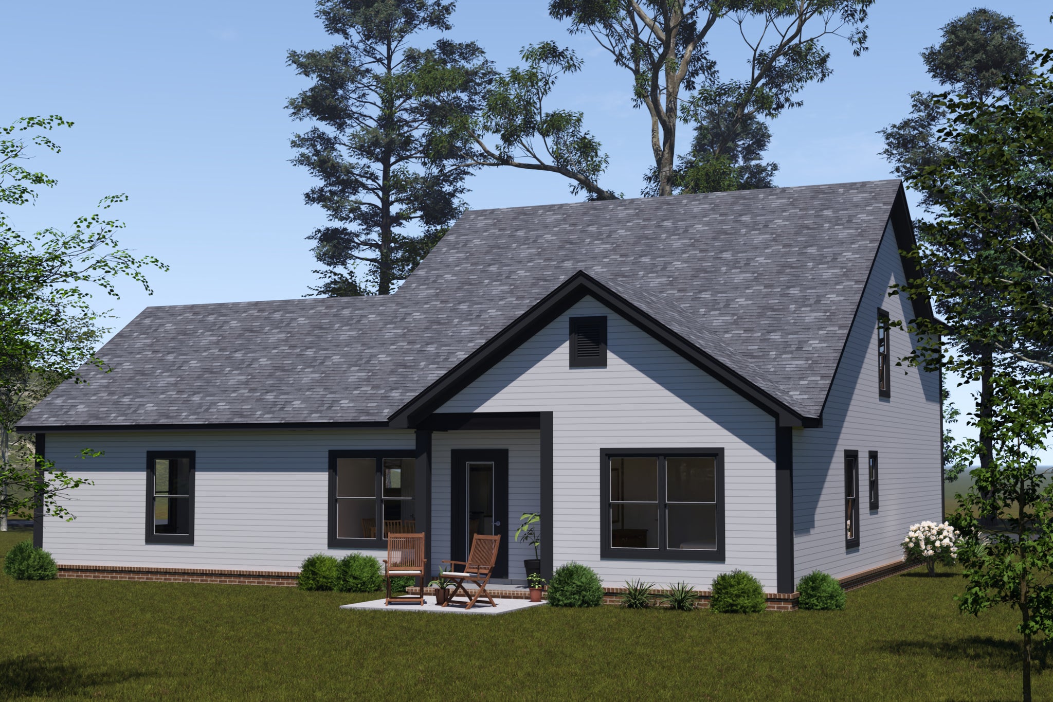 The first-floor master suite offers a peaceful retreat, complete with a double-vanity bath and walk-in closet. A second bedroom on the main level provides flexibility for guests or an office. Upstairs, two additional bedrooms and a full bath add space for family or visitors. The rear porch extends the living area outdoors, while the two-car garage offers convenience and storage.