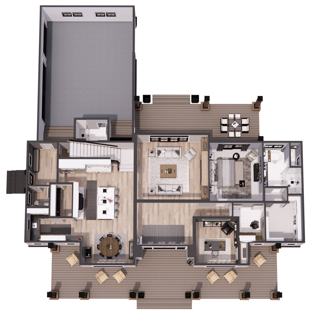 This exquisite 4-bedroom luxury home plan offers 3,482 sq. ft. of heated living space designed for comfort and elegance. The main floor features a grand foyer leading into an expansive great room with soaring vaulted ceilings and a cozy fireplace. A gourmet kitchen with a large island, walk-in pantry, and eating bar flows effortlessly into the keeping room, making it ideal for family gatherings. The main-level master suite includes a sitting area, spa-worthy private bath, double-sink vanity, and a spacious walk-in closet with direct laundry access for maximum convenience. A dedicated home office provides a quiet workspace, while covered front and rear porches extend your living outdoors.