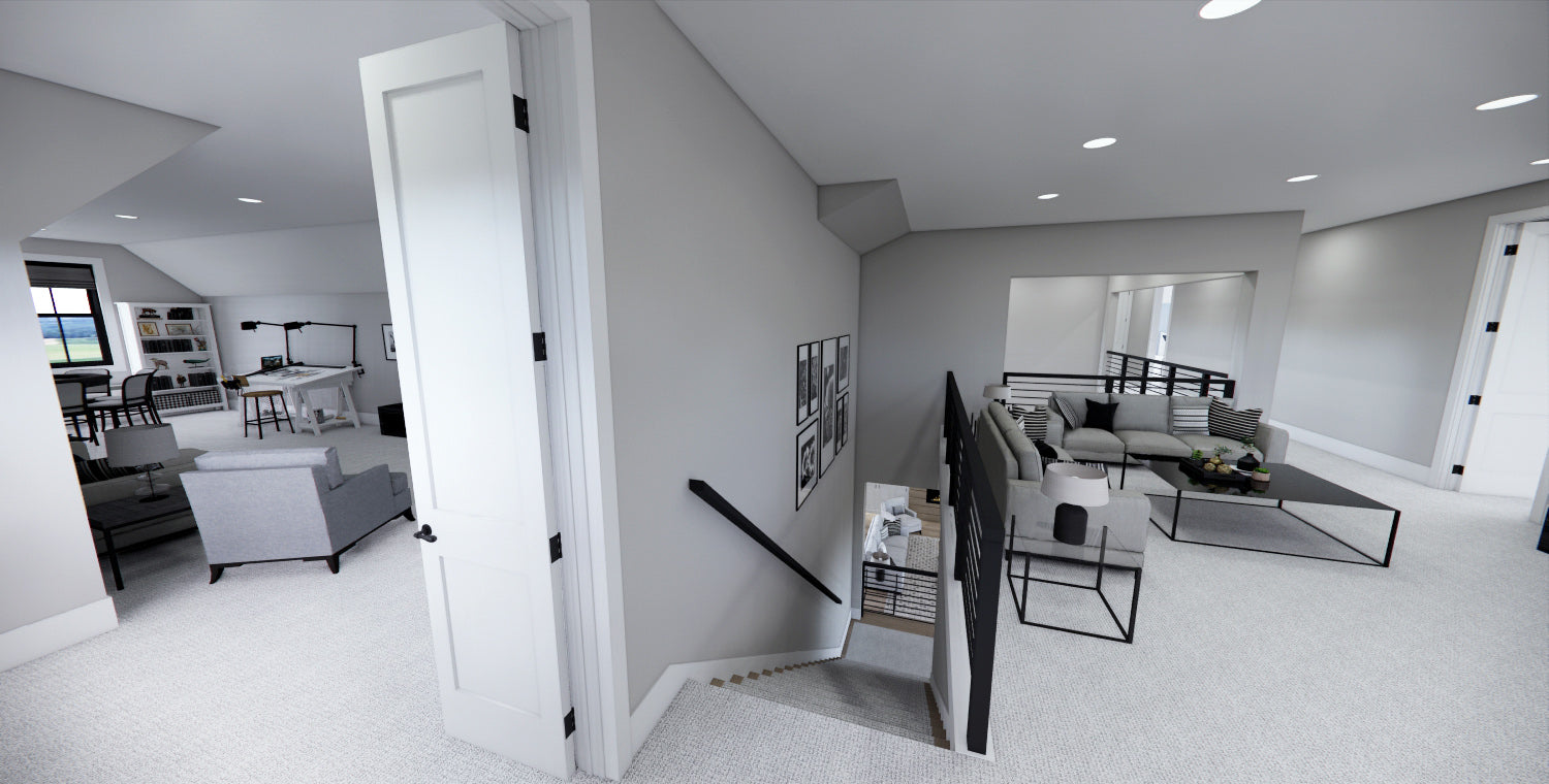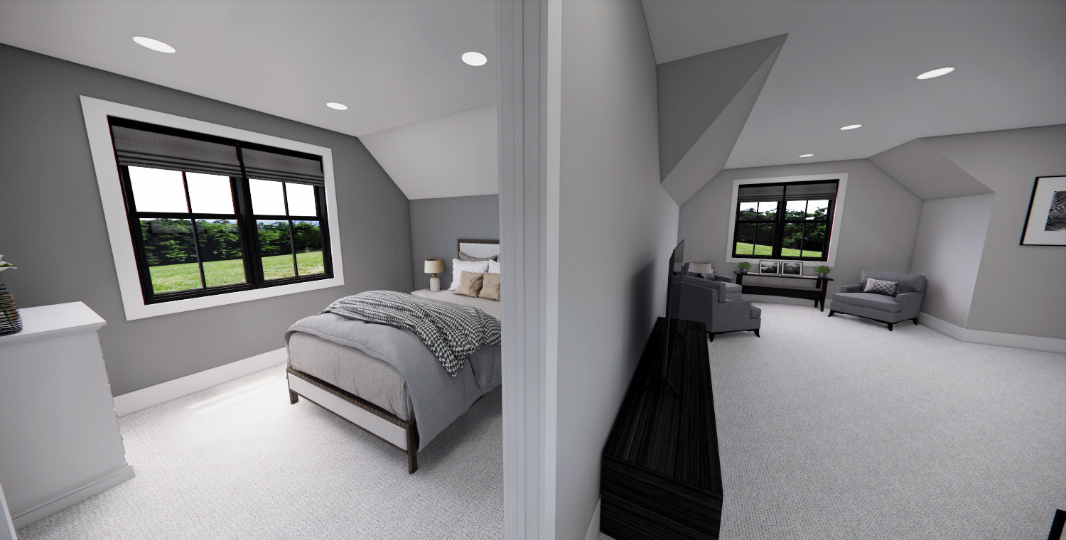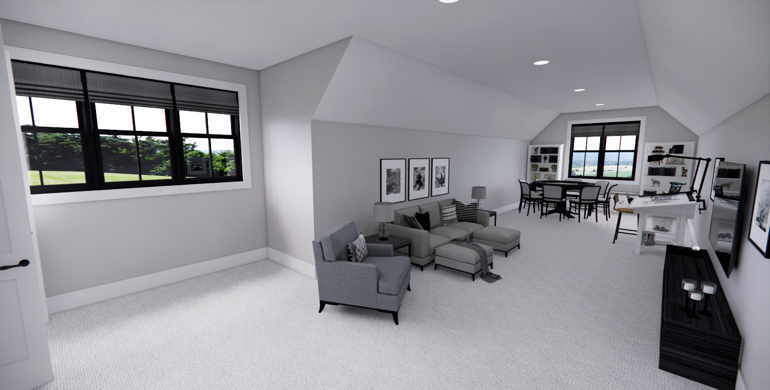 The second floor offers three additional bedrooms, including a Jack and Jill bathroom and a generous loft overlooking the living spaces below. A 512 sq. ft. bonus room adds flexibility—perfect for a game room, media room, or future expansion. With a 3-car side-entry garage, abundant storage, and a functional mudroom, this home is designed for modern living. Its striking 12:12 roof pitch, balanced façade, and timeless architectural details create an impressive presence from every angle.