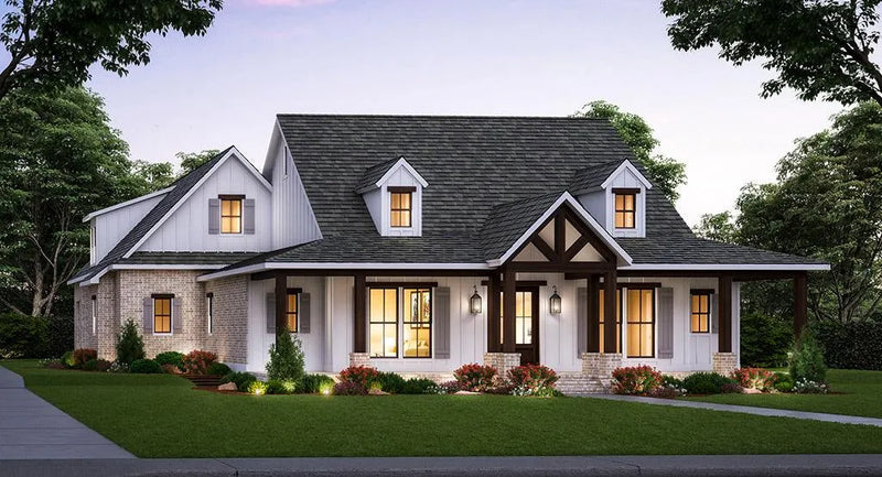 At-a-glance at this one-story farmhouse plan: