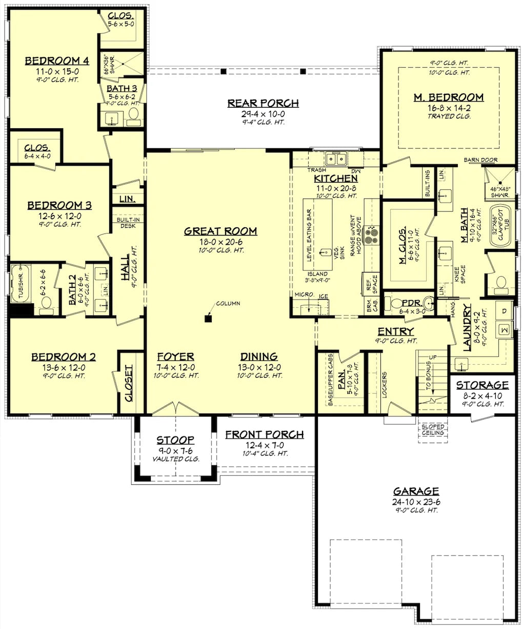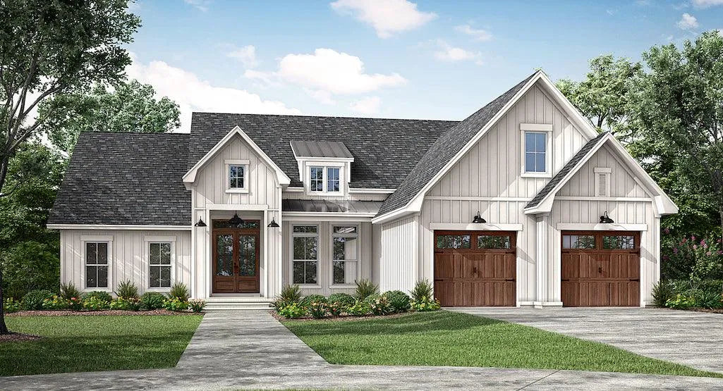 Spanning 2,658 sq ft, this thoughtfully designed home maximizes living space across a single floor while offering a 315 sq ft bonus room for additional versatility. The open layout includes a great room that flows seamlessly into a formal dining area, perfect for entertaining. The first-floor owner's suite features a double vanity in the luxurious master bath, while three additional bedrooms accommodate family or guests. Convenience is key, with a dedicated laundry room and a mudroom for easy access. The home also includes a front porch and a rear porch, extending your living space outdoors. A 669 sq ft garage with front loading completes this impressive plan, providing ample storage and parking for two vehicles.