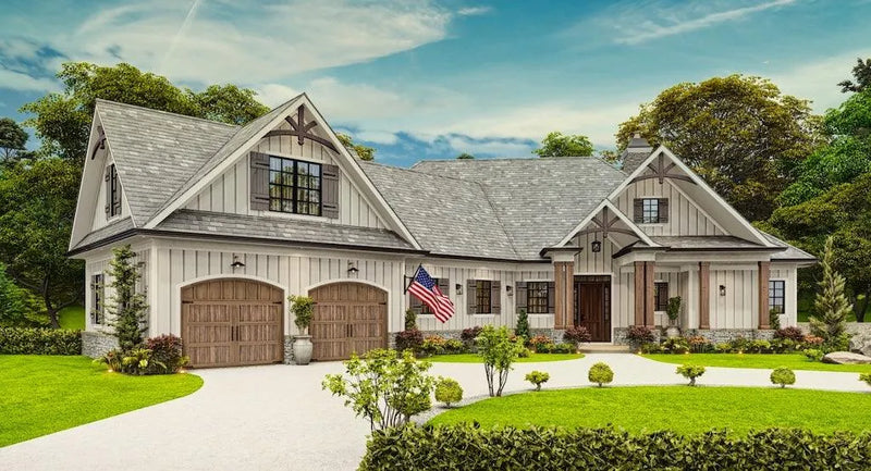 Built on a sturdy basement foundation, this home includes an impressive 2,243 sq ft of additional space, enhancing your living experience. The side-load garage accommodates two vehicles and provides 576 sq ft of space for storage or projects. Measuring 82' in width and 74'-6'' in depth, the home stands at a height of 27'-8'', featuring soaring 10' ceilings on the first floor and 8' ceilings on the second floor, along with a 9' basement ceiling. This versatile and inviting plan is designed for modern living—make it your dream home today!