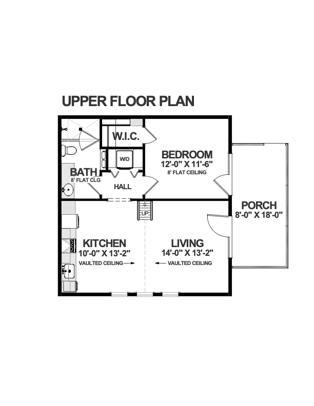 This 650 sq. ft. 2-story garage apartment combines functionality and style in a compact design. The garage accommodates 2 cars with a front-entry and offers additional storage. Above the garage, the vaulted living room and kitchen provide a spacious, open feel. Stairs lead up to a 155 sq. ft. loft, ideal for a cozy retreat or additional sleeping space. The bedroom suite features a walk-in closet, a private bathroom, and a shower, ensuring comfort and privacy.