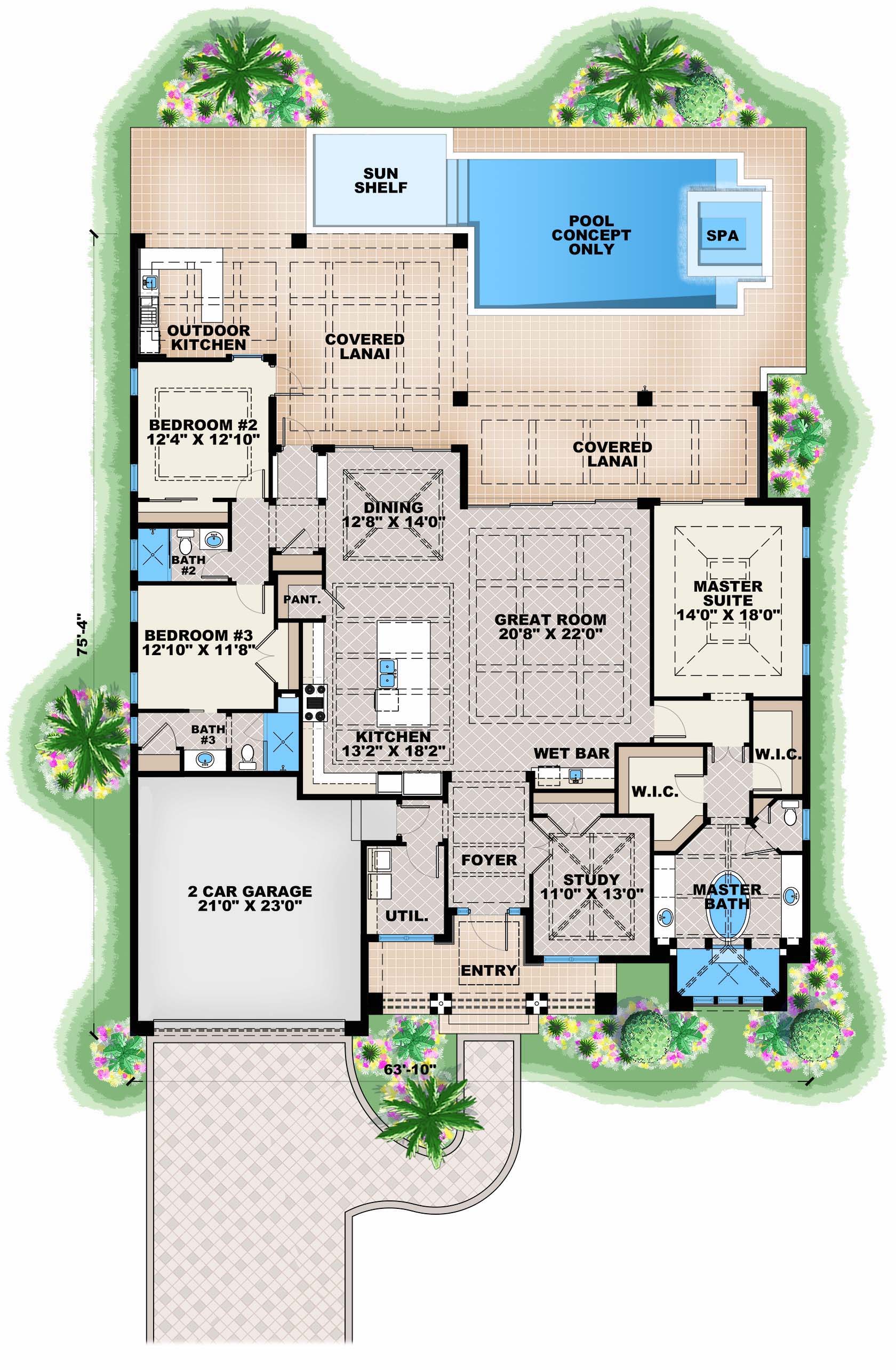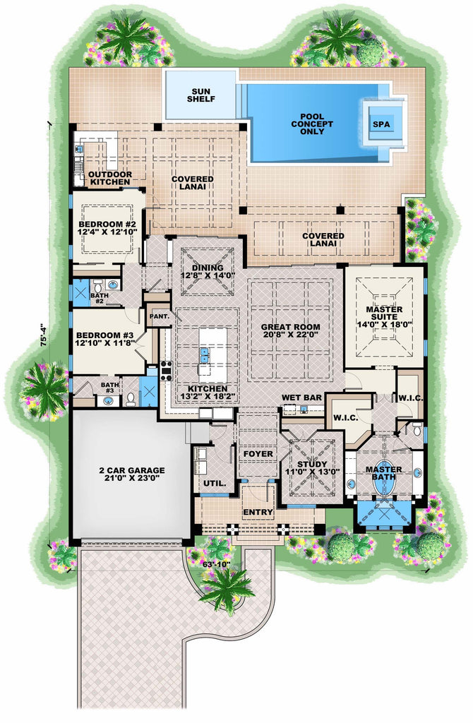 This 2684 sq ft home is designed with luxury and functionality in mind, offering a spacious first floor layout with a stemwall foundation. The open floor plan includes a first-floor master suite, designed for comfort and privacy, with easy access to the outdoor kitchen and living spaces. The kitchen features a butler's pantry for additional storage and prep space, while the wet bar adds a touch of sophistication for entertaining guests.