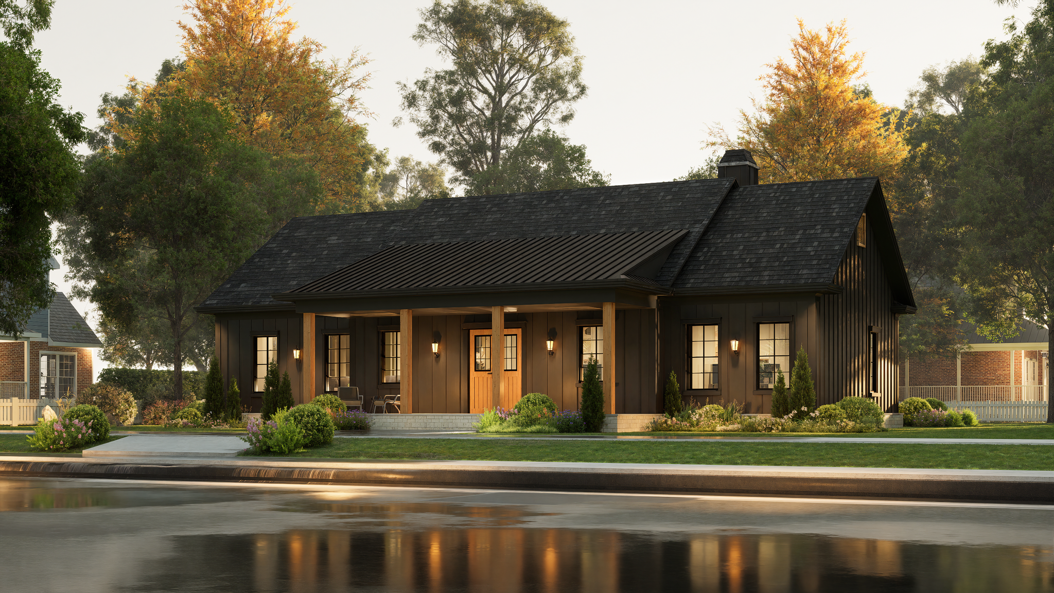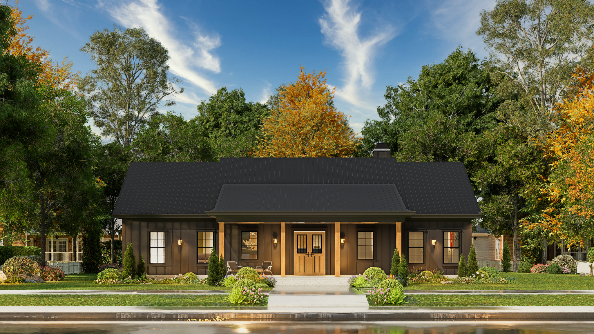 Ideal for entertaining or quiet evenings at home, this design features expansive outdoor spaces, including a welcoming 224-square-foot front porch, a 336-square-foot rear porch, and optional 288-square-foot rear decks for additional outdoor living. Crafted with 2x4 exterior wall framing, stick roof framing, and a versatile 8:12 roof pitch, this board-and-batten farmhouse combines rustic charm with modern convenience — perfect for families who love traditional design and open, airy living.