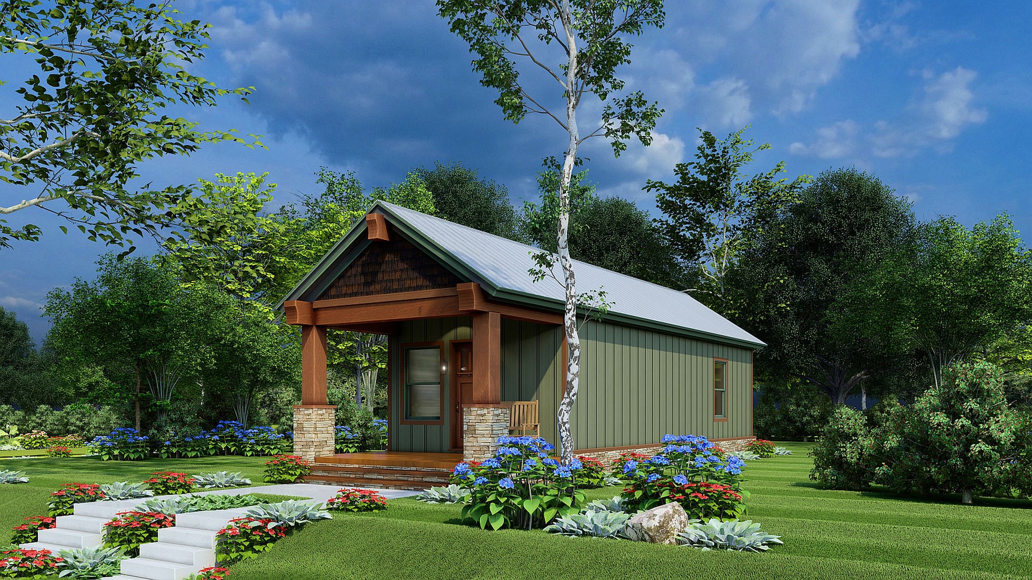 This efficiently designed home offers 504 sq ft of heated living space, perfect for a guest house, vacation retreat, rental property, or minimalist living. The thoughtful floor plan includes 1 bedroom and 1 full bathroom, a cozy den/living area, and a surprisingly spacious kitchen with walk-in pantry. The first-floor master suite offers comfort and privacy, while the laundry area adds convenience—all on a single level with 9' ceilings for an open, airy feel.