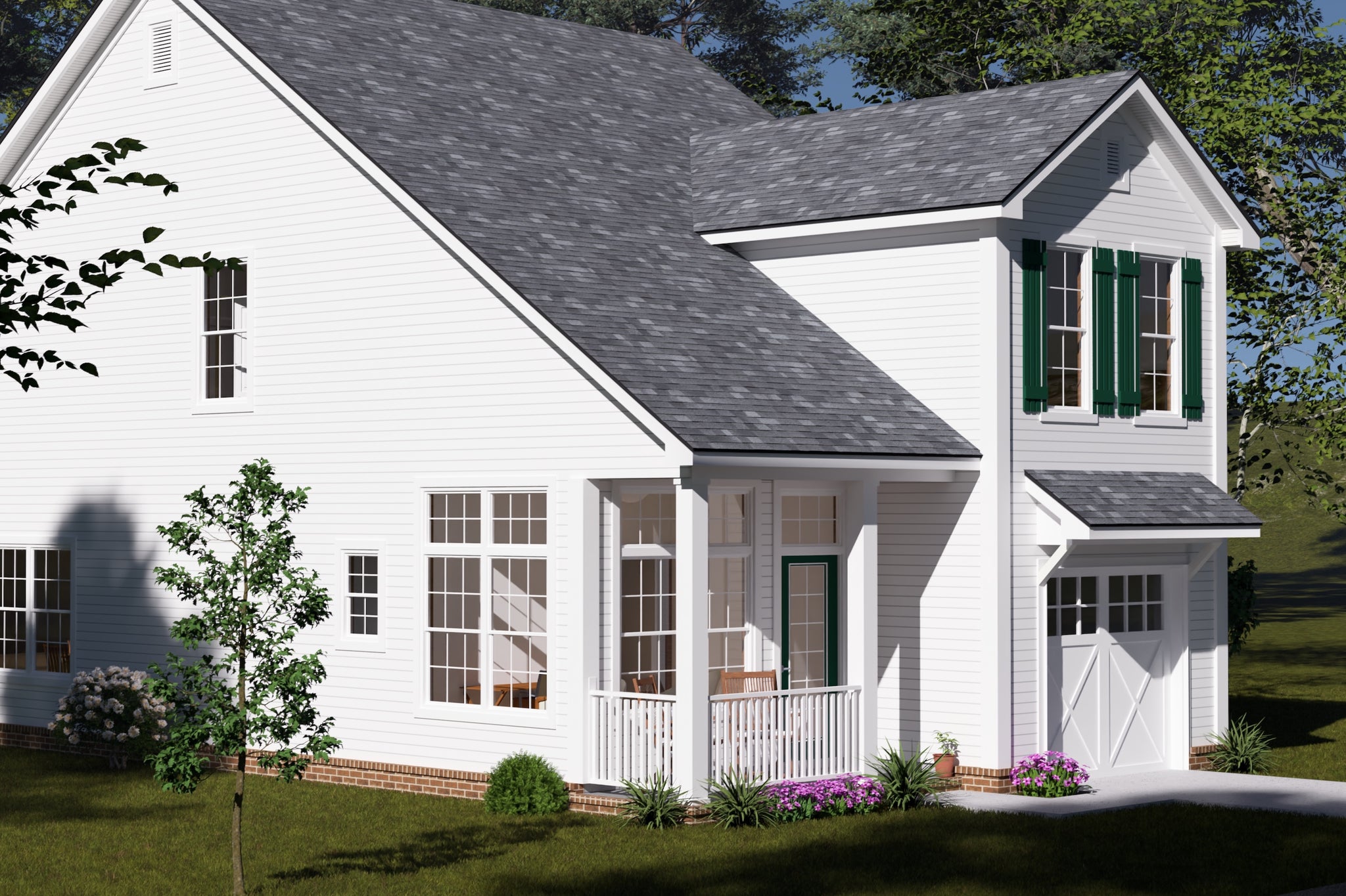 Upstairs, a cozy loft overlooks the living area below and provides the ideal space for a home office, study nook, or recreation area. Two additional bedrooms share a well-appointed bathroom, making this plan flexible for families, guests, or hobbies. With its compact footprint, efficient layout, and charming ranch-style appeal, this home blends comfort and practicality in a beautifully balanced design.
