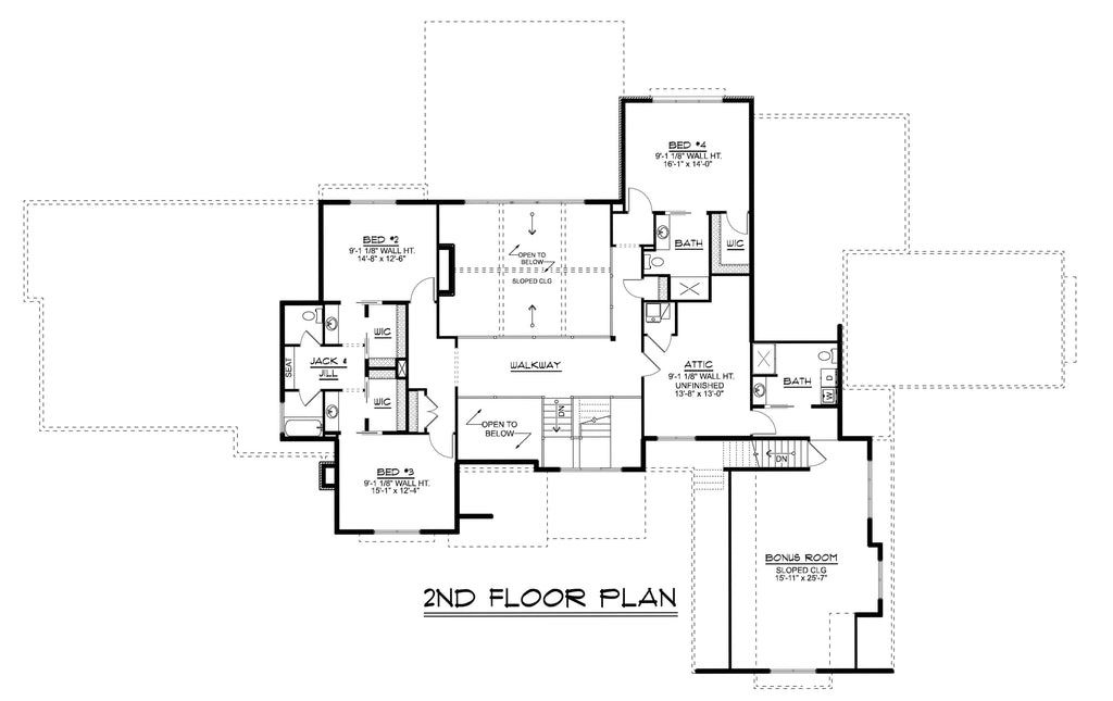 Q7486-A Modern Farmhouse Second Floor Plan, 4 Bed, 4.5 Bath | Plan 2543