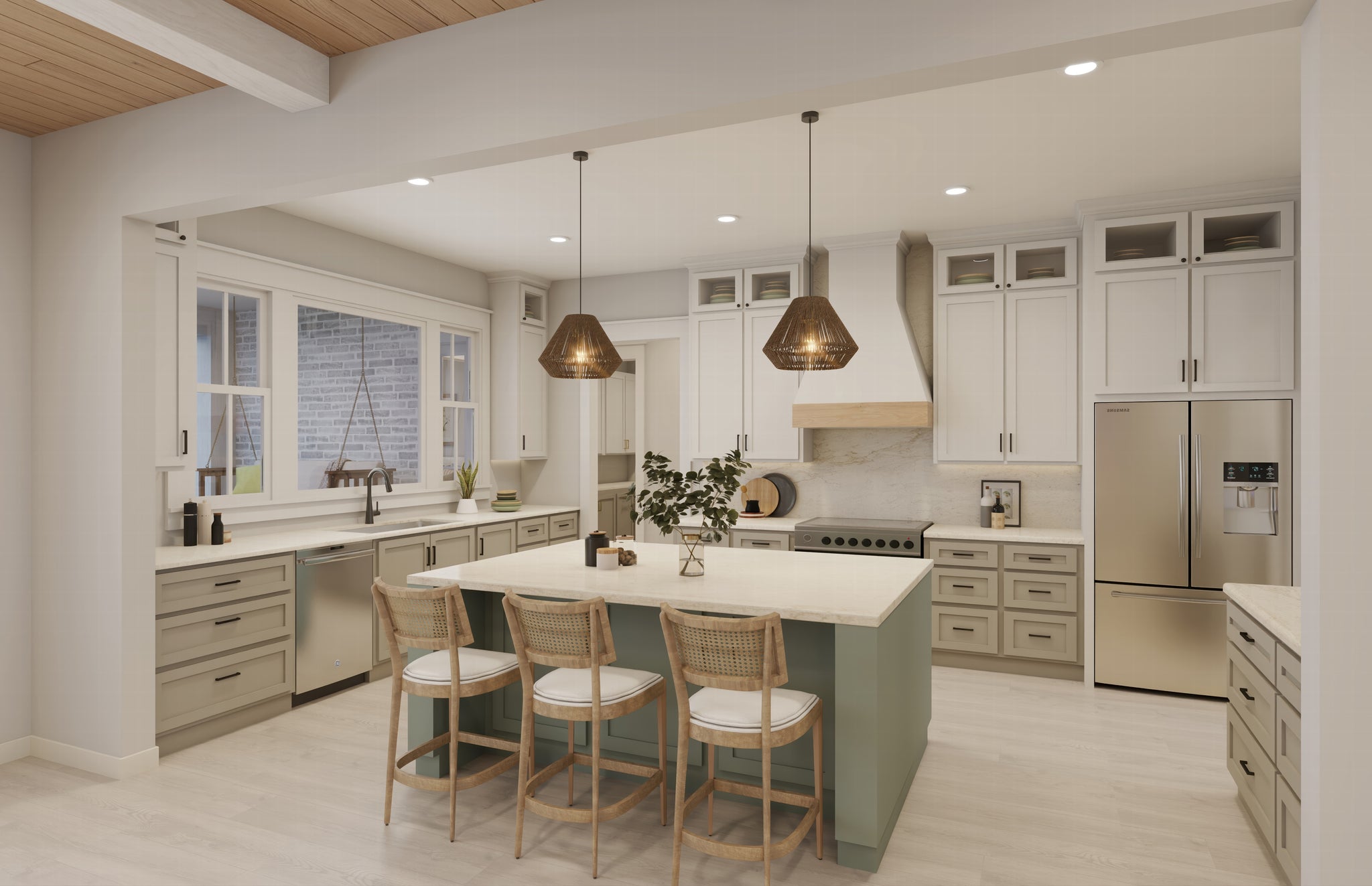This modern farmhouse combines rustic charm with contemporary elegance, offering 3,500 sq. ft. of thoughtfully designed living space. The open-concept layout flows effortlessly between the great room, gourmet kitchen, and formal dining area, creating an inviting atmosphere for gatherings. A large kitchen island and walk-in pantry make cooking and hosting a joy, while the covered front and rear porches, complete with an outdoor fireplace, extend your living space into the fresh air.