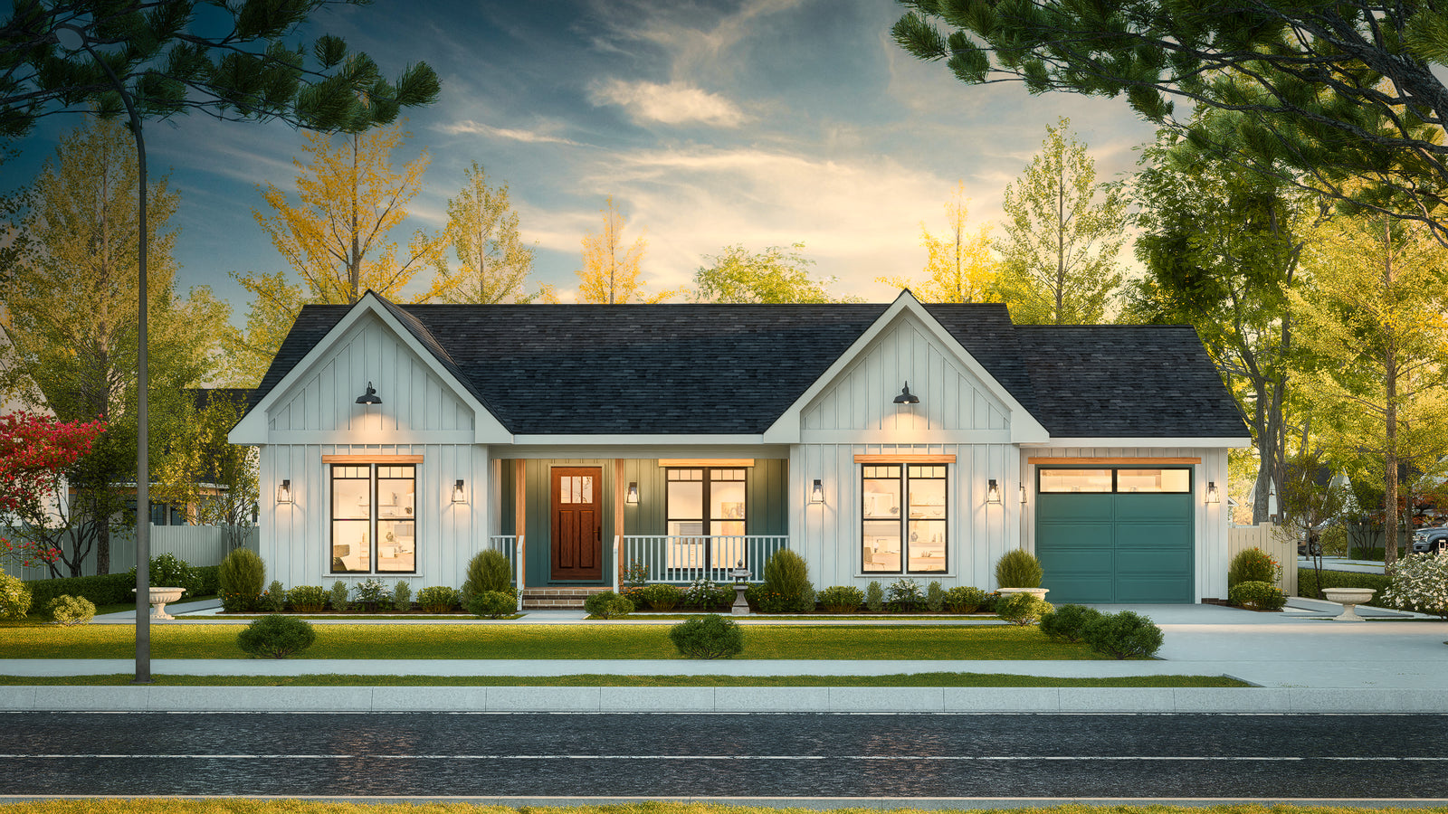 Modern Farmhouse Plans blending rustic warmth with sleek, contemporary lines.