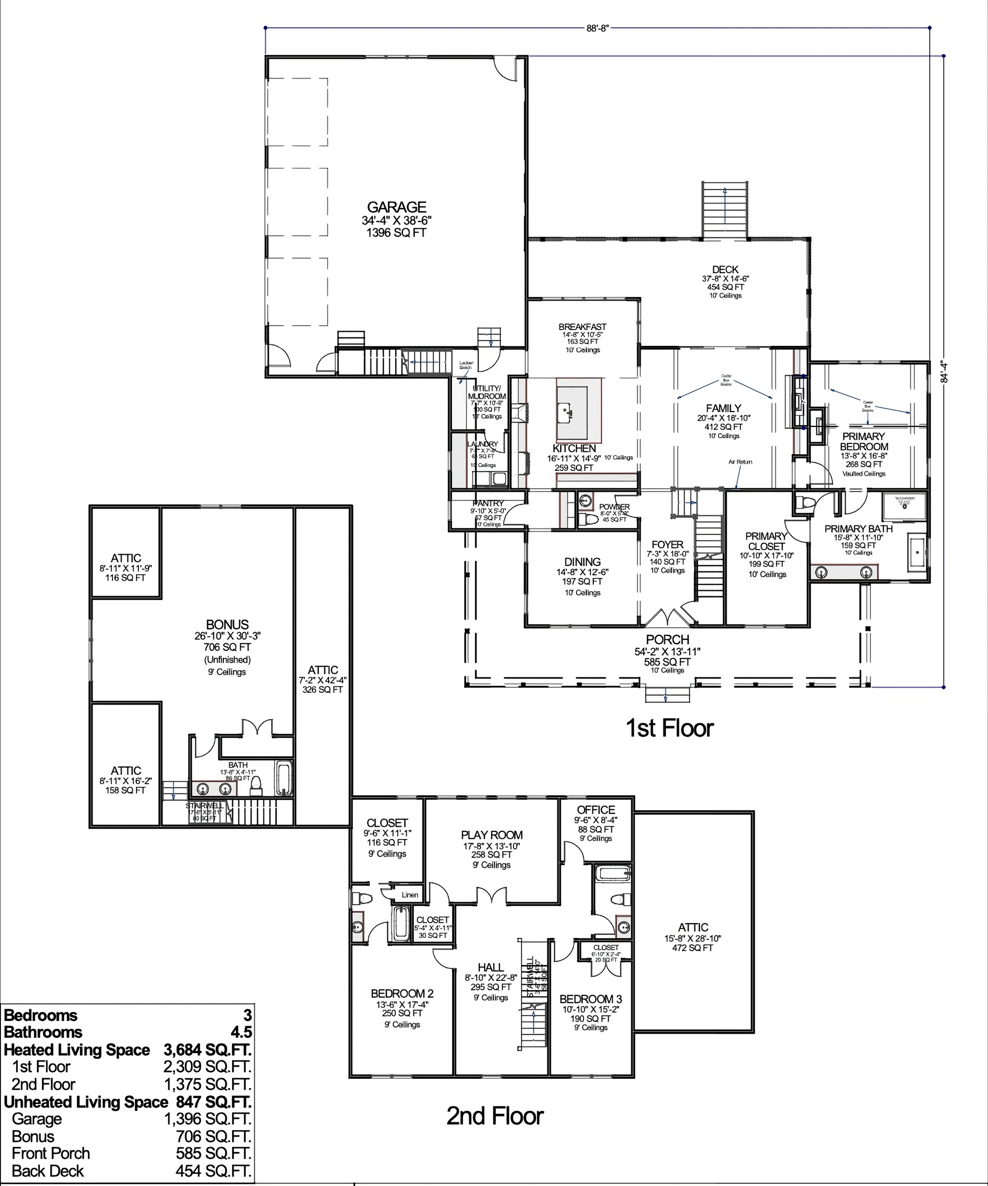 Step inside a 3500–3999 sq ft home plan and you’ll discover a world of luxury features designed to elevate your lifestyle. These spacious homes are crafted to provide ample space for both relaxation and entertaining, with every detail thoughtfully considered for comfort and beauty. Imagine starting your day in a spa-inspired bathroom with double vanities, soaking tubs, and walk-in showers, or preparing meals in a gourmet kitchen equipped with a walk-in pantry, professional-grade appliances, and expansive islands perfect for family gatherings.