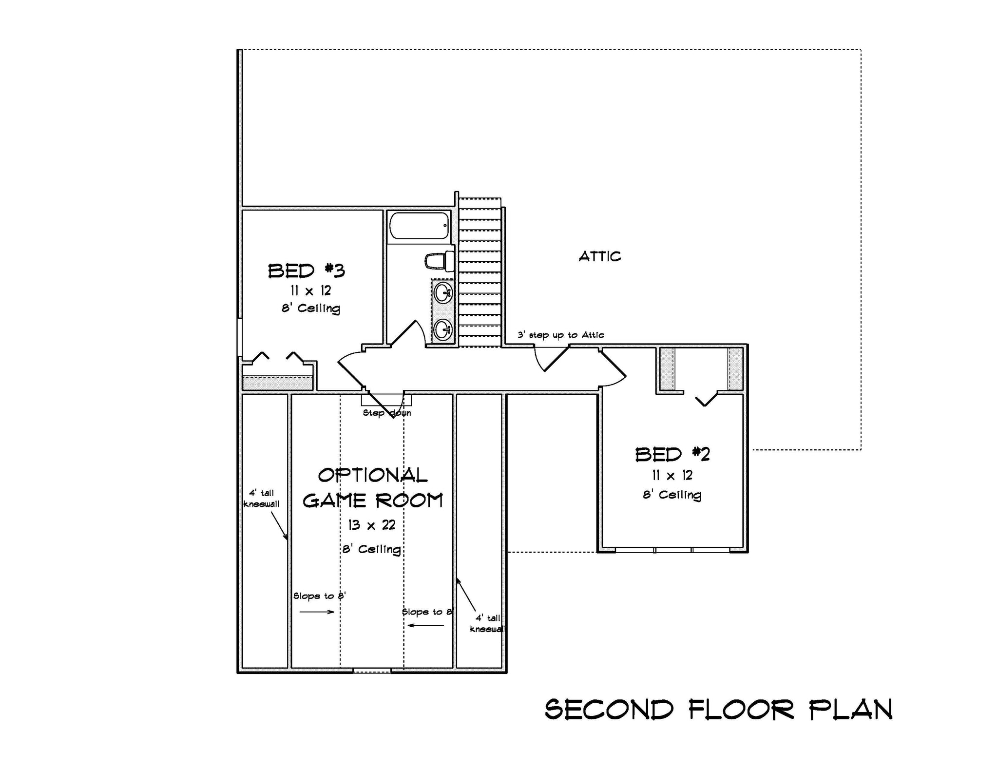 Upstairs, the home provides two additional bedrooms and a flexible bonus room perfect for a playroom, guest suite, or home studio. A home office/study, first-floor laundry, and utility room add convenience and practicality. With 9-foot ceilings on the main floor, a 12:12 and 9:12 roof pitch, and stick framing, this design combines sturdy craftsmanship with cozy cottage appeal. The two-car front-load garage (462 sq ft) completes this warm and inviting home — ideal for families who love charm, comfort, and classic design in a modern layout.