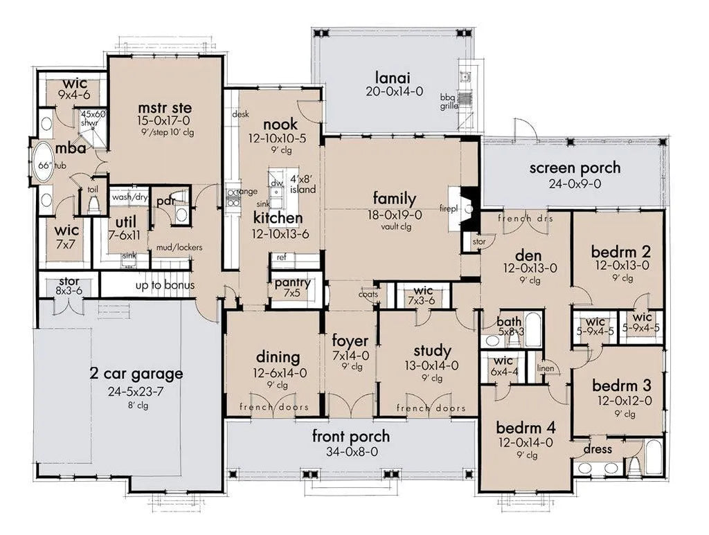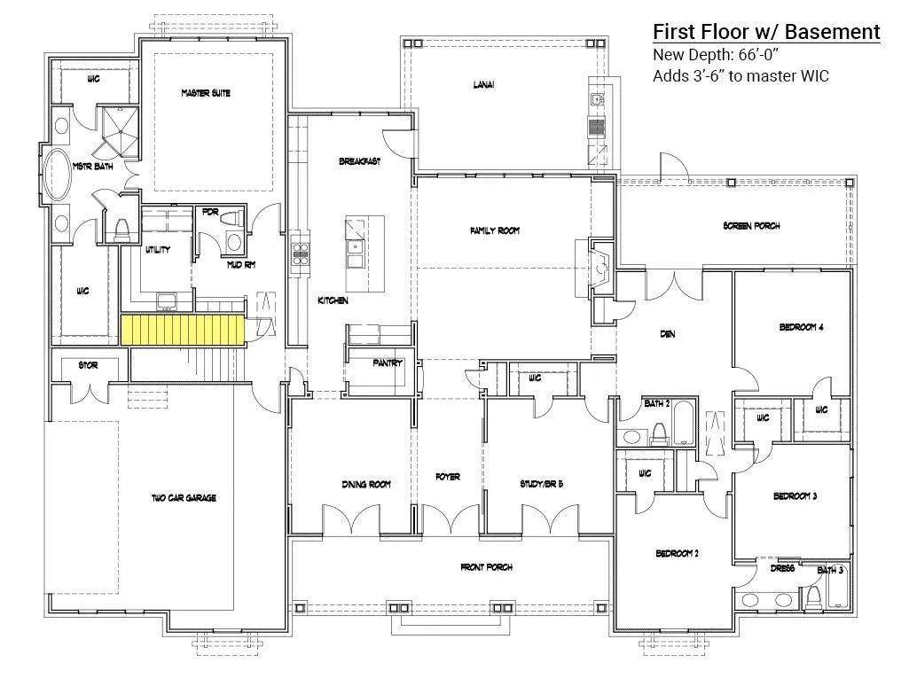Creekview house plan can be purchased with a number of different foundation types; slab, crawl, basement or walkout basement. We can also modify this or any house plan we offer at Archival Designs.