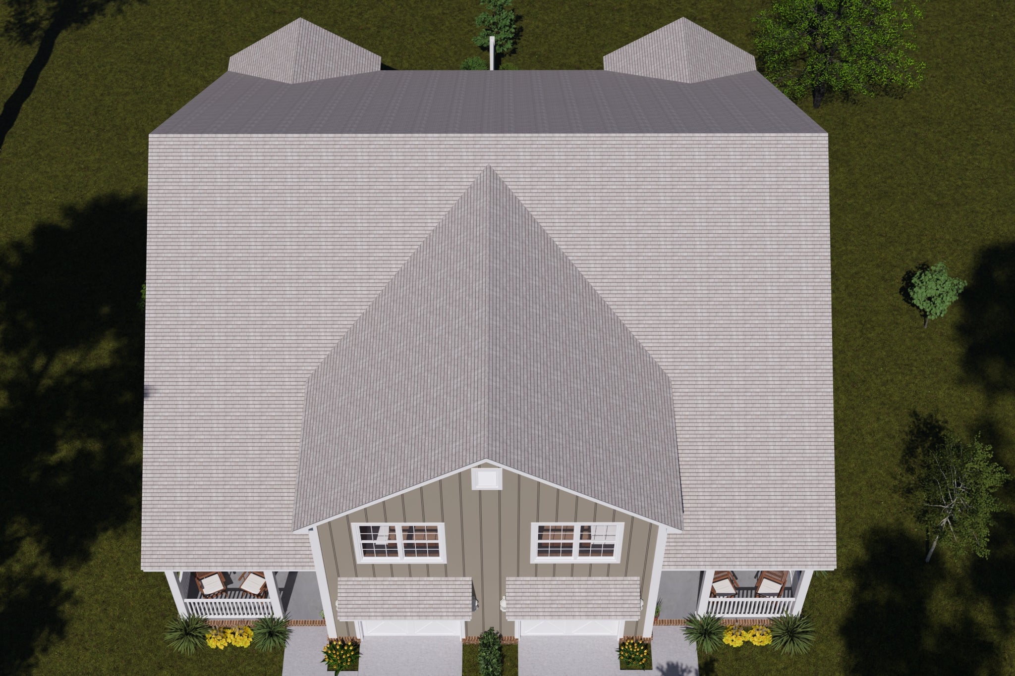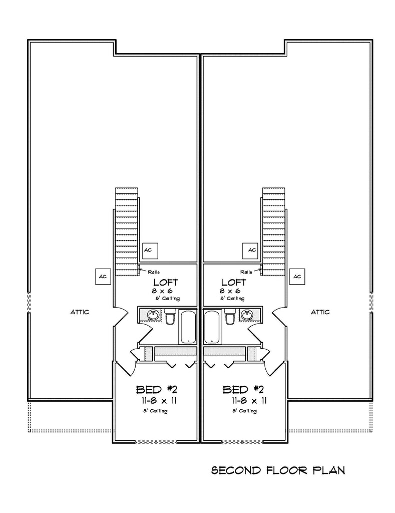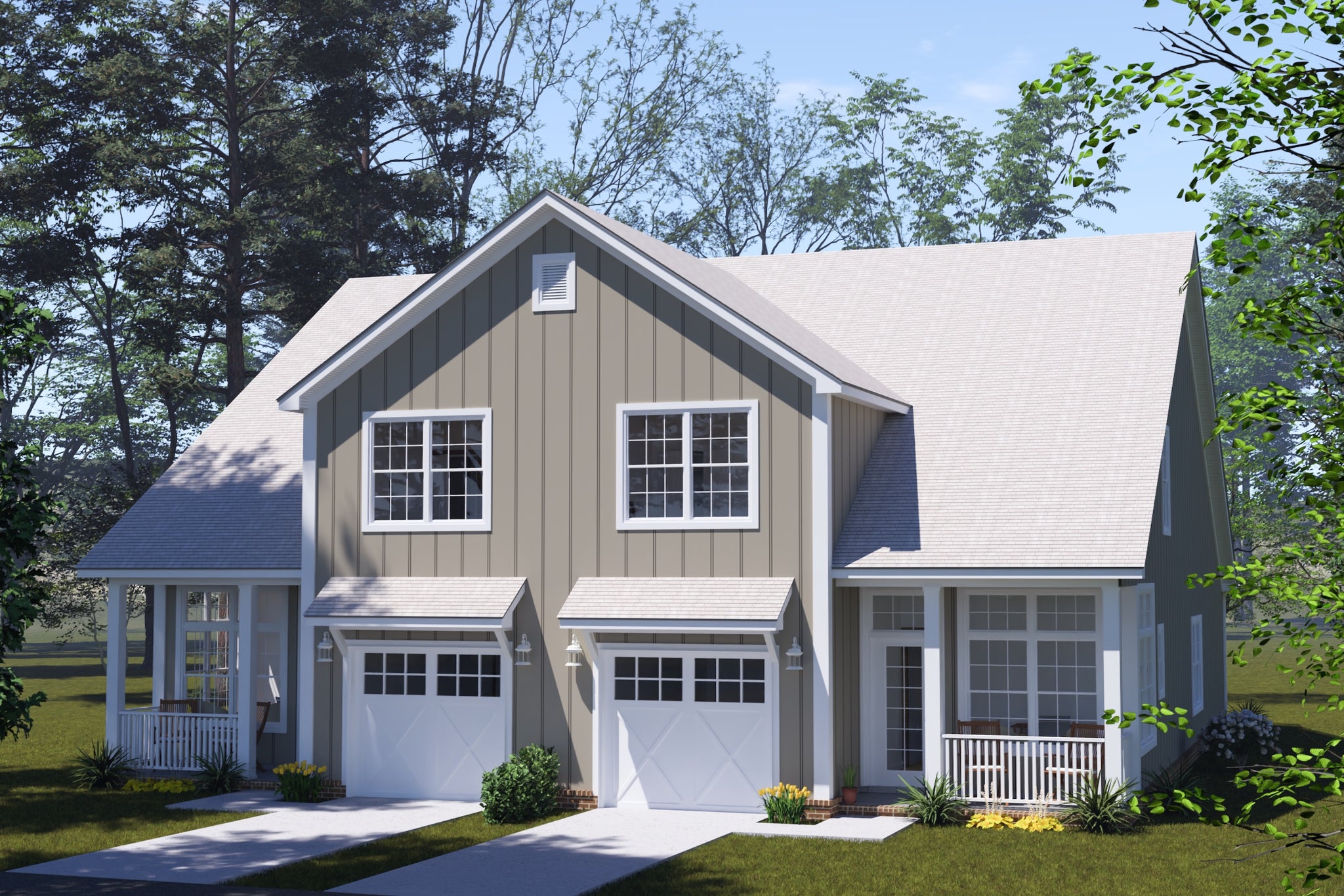 The second floor adds versatility with a loft overlooking the living space, ideal as a lounge, study zone, or play area. Three additional bedrooms—each with its own bath—make this plan ideal for large families or multigenerational living. With two half baths on the main level, a covered front porch, and smart space planning, this duplex-style home blends functional efficiency with modern comfort for today’s households.