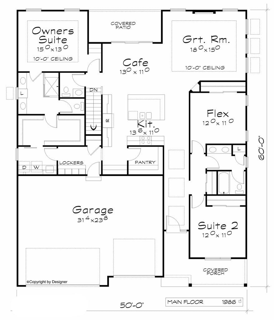 • Main Floor Plan – Fully dimensioned for framing, with wall thickness notes
