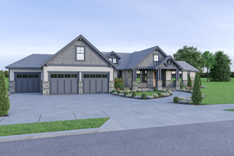 Ideal for entertaining and everyday life, the home includes a 284 sq ft patio, 184 sq ft of covered porches, and a generous 3-car front-load garage (1,060 sq ft). With 2x6 wall framing, durable truss roof construction, and roof pitches of 6:12 and 10:12, this plan is built for long-term performance and comfort. The 377 sq ft bonus room above adds potential for a playroom, office, or guest retreat—making this plan as flexible as it is functional.
