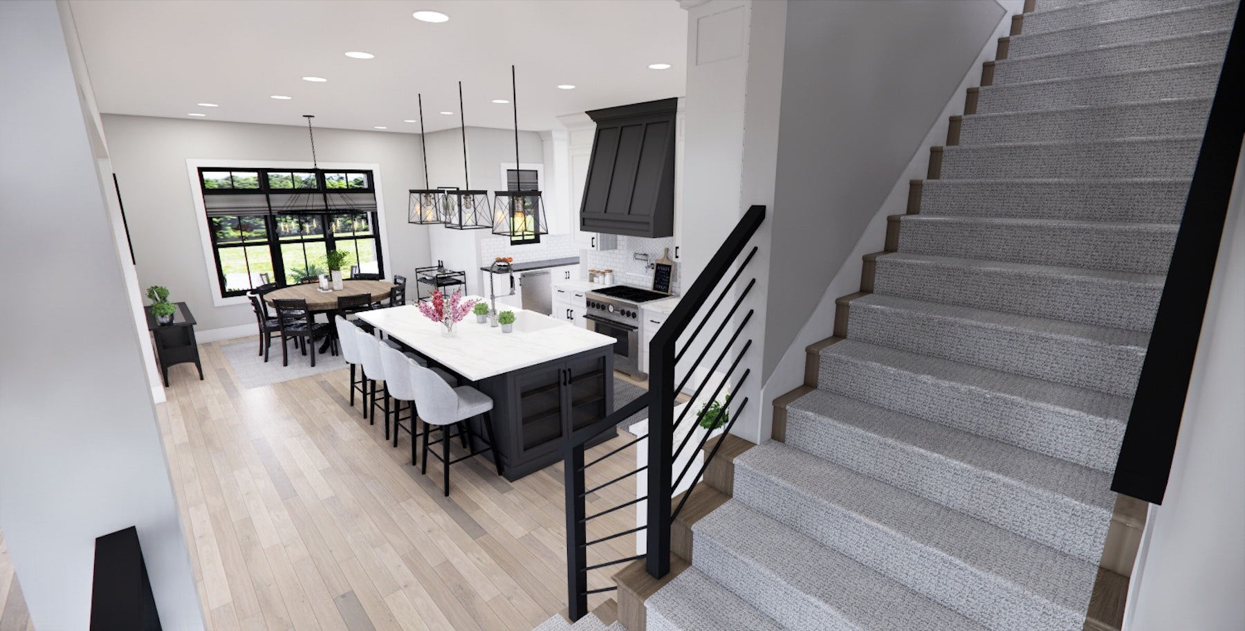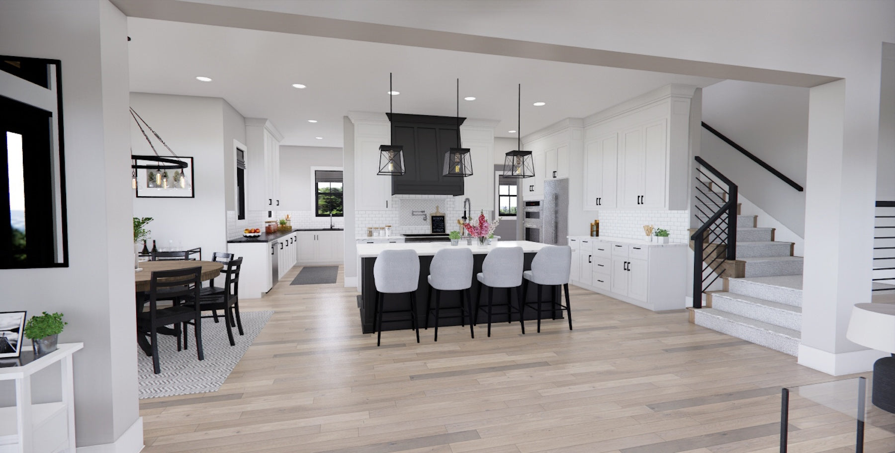 This stunning 3264 sq ft modern farmhouse offers a perfect blend of classic charm and contemporary comfort. The exterior welcomes you with wide front and rear porches, ideal for outdoor relaxation. Inside, the open floor plan seamlessly connects the great room, kitchen, and breakfast area, creating an inviting space for gatherings. The first-floor master suite provides luxurious comfort with its sitting area, double-vanity bath, and convenient laundry access. A dedicated home office and formal dining room enhance everyday functionality, while abundant windows fill the home with natural light.