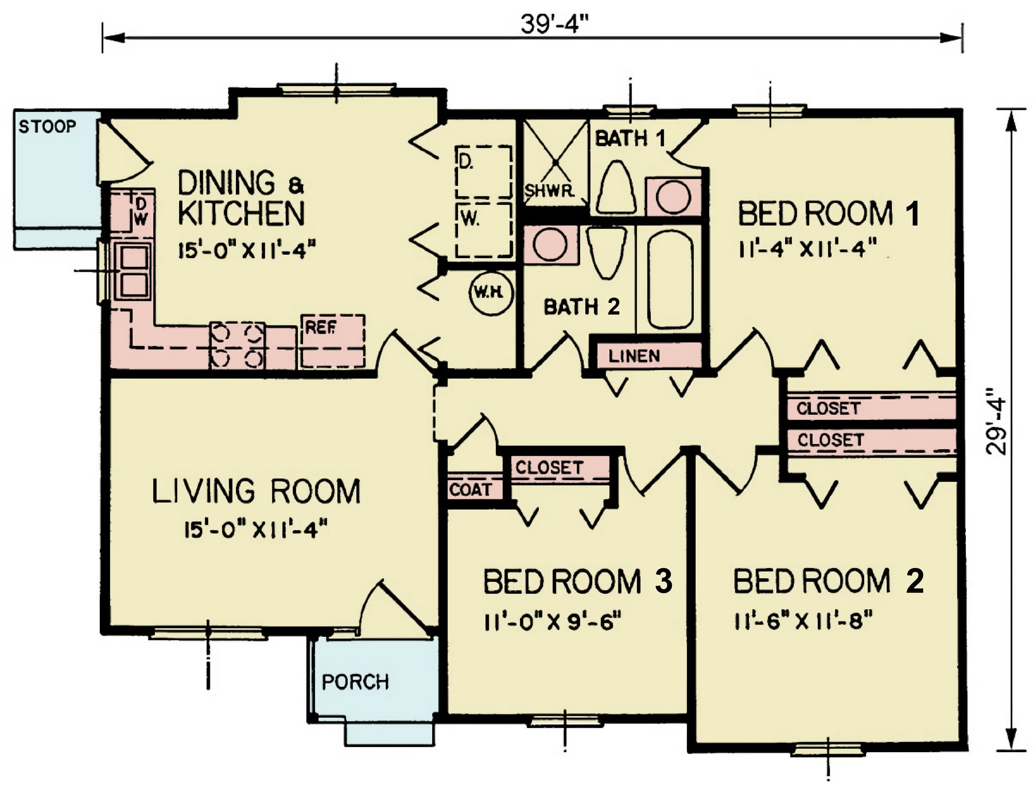 Exterior charm is highlighted by classic siding, a cozy 24 sq ft front porch, and an additional 21 sq ft stoop—ideal for relaxed, everyday living. With a 7:12 stick-framed shingle roof and a traditional bungalow style, this home offers timeless curb appeal. Thoughtfully designed with a first-floor laundry and no garage to maintain, this plan is perfect for those looking for low-maintenance living without sacrificing comfort or privacy.