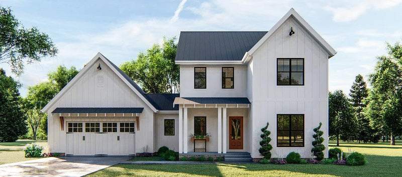 This beautifully configured Modern Farmhouse plan offers an open efficient floor plan. On the outside, board and batten siding and a covered porch put on a striking display of curb appeal.
