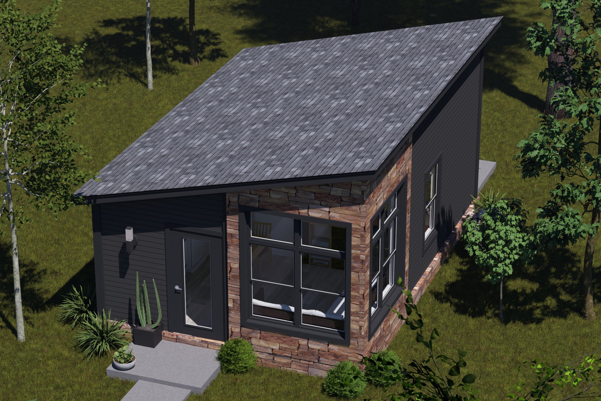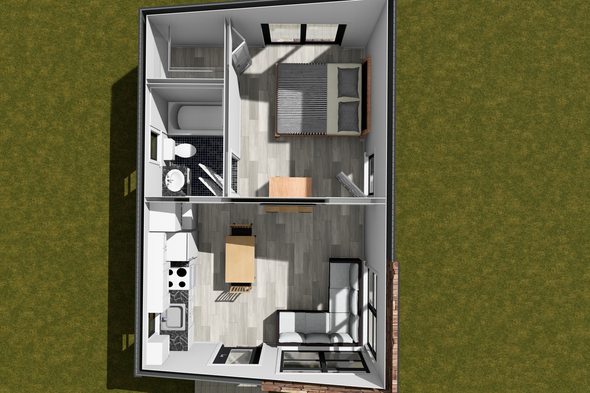 Efficient Tiny Home Plan with Bedroom Suite and Open Living Space