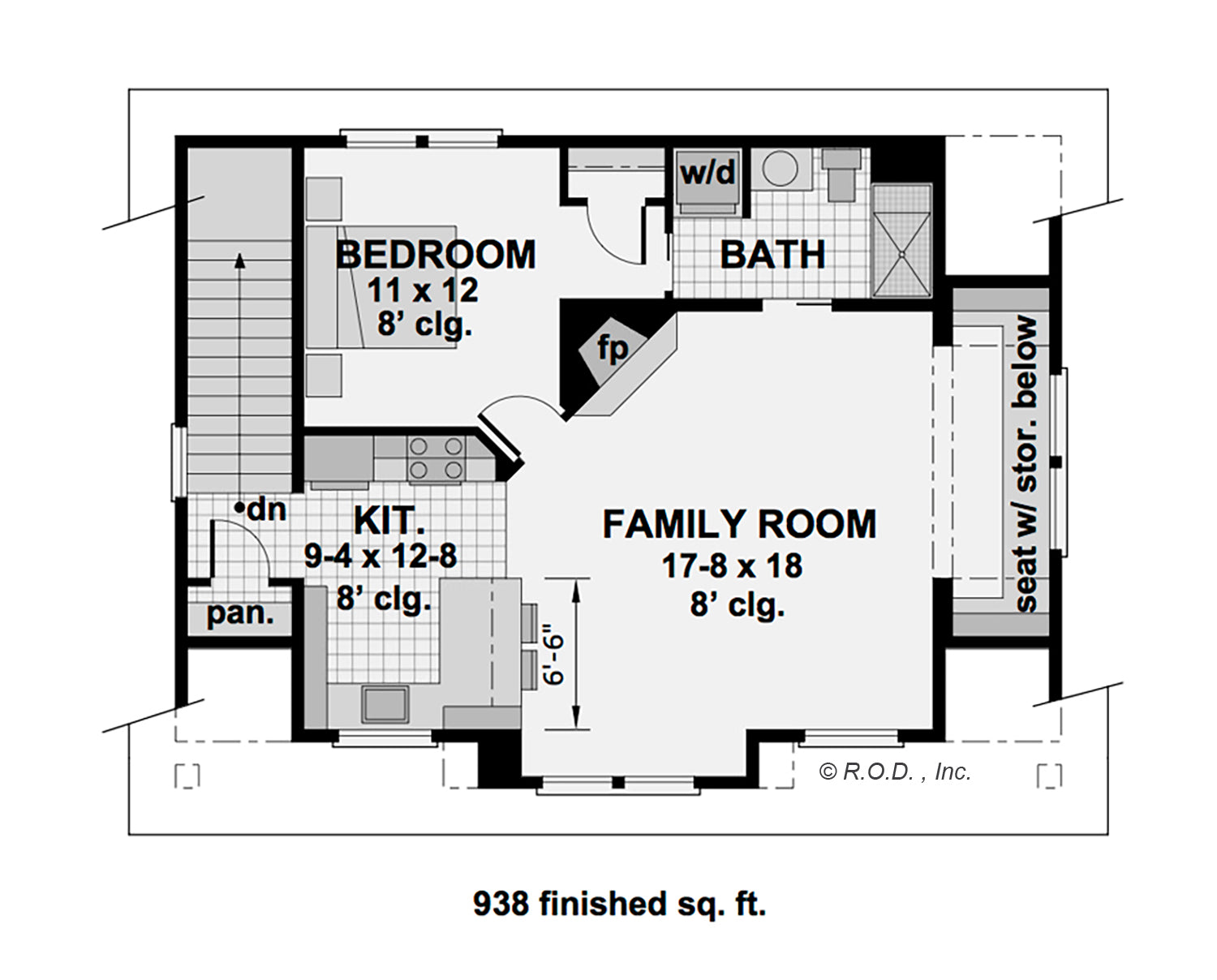 The open-concept living area features a cozy fireplace, a central kitchen with island seating, and a comfortable keeping/family room. The spacious master suite includes direct access to the laundry, adding everyday ease. With 2x6 framing, a steep 12:12 roof pitch, and second-floor ceiling height of 8 feet, this plan combines practicality with architectural character—making it a smart choice for property owners looking to maximize space and value.