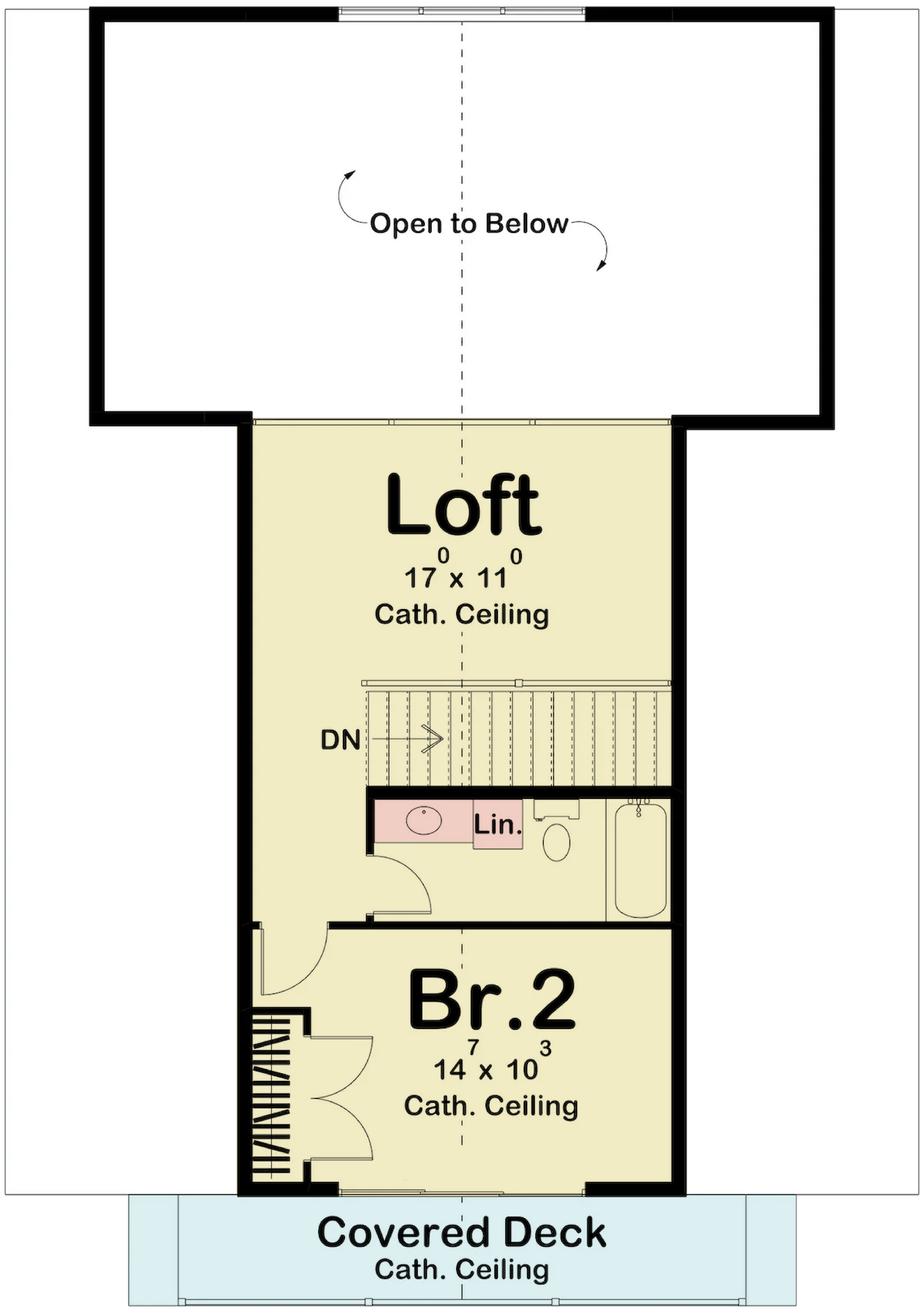 • The second floor adds an additional bedroom and a wonderful loft area. The bedroom feels huge with its tall cathedral ceiling.