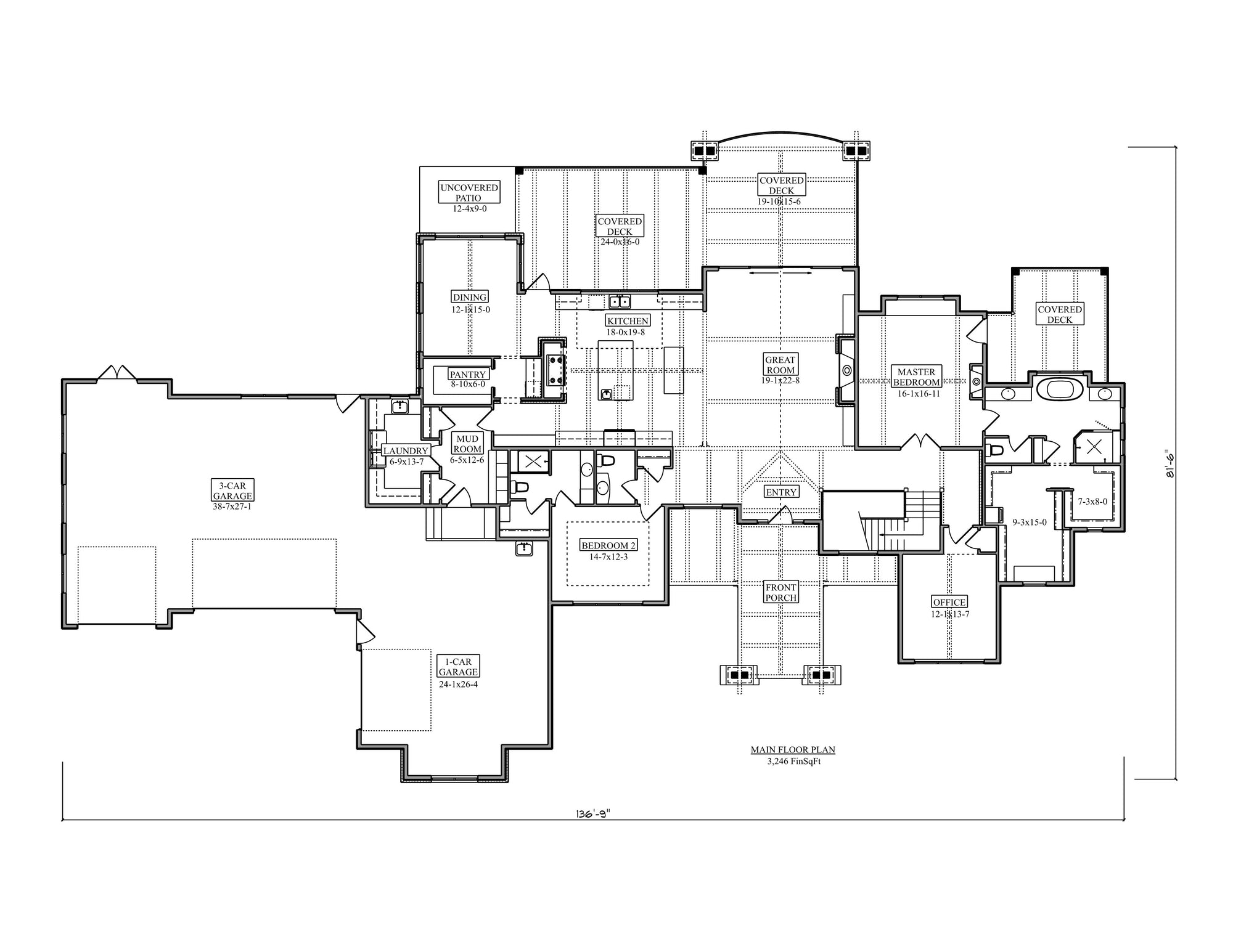 This grand 3,246 sq ft home offers a luxurious and spacious layout, perfect for large families or those who love to entertain. Featuring 5 bedrooms and 4 full bathrooms with 2 half bathrooms, the home is designed for both comfort and practicality. The first-floor master suite offers a private retreat with access to the laundry room for ultimate convenience. A formal dining room provides an elegant space for gatherings, while the open-concept kitchen flows seamlessly into the game room and family living areas. The home also includes a home office/study, ideal for remote work or quiet study. A mudroom adds functionality, while the split bedroom design ensures privacy for everyone. The expansive deck (1,383 sq ft) extends the living space outdoors, ideal for entertaining or enjoying the view. A walkout basement adds additional living or storage space, and the 4-car garage provides ample room for vehicles and storage. With 2x6 wall framing, 10-foot ceilings on both the first floor and basement, and a 24'2" building height, this home offers a spacious, open atmosphere. The width of 136'9" and depth of 81'6" ensure this home is perfect for larger lots.