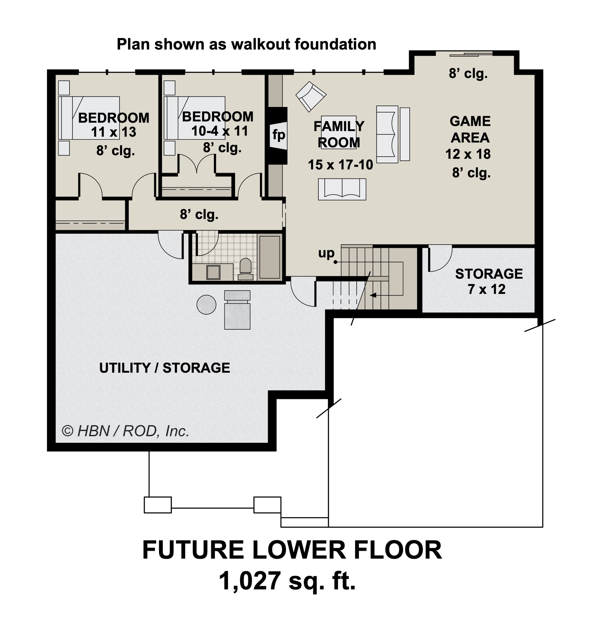Walkout Basement - This foundation is typically suited for rear-sloping lots and provides storage or living areas. Walkout basements have doors that provide access to the outside.