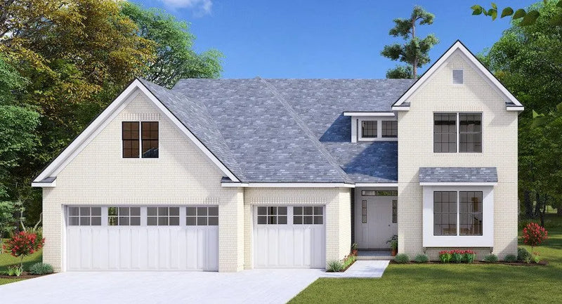 This charming family home plan boasts a total living area of 2171 sq ft, with 1639 sq ft on the first floor designed for everyday living. The second floor adds another 532 sq ft, providing additional space for family or guests, complemented by a bonus room of 330 sq ft that can serve multiple purposes. Enjoy the outdoors with a welcoming front porch of 330 sq ft and a rear porch of 128 sq ft, perfect for relaxation. The home features a spacious garage of 698 sq ft with three bays, ensuring ample storage and parking. With three bedrooms and 2.5 bathrooms, this home accommodates a variety of lifestyles. Built on a slab foundation with 2x4 wall framing, it combines durability with comfort. The roof features a combination pitch of 9:12 and 12:12, enhancing its aesthetic appeal. Ceiling heights of 9' on the first floor and 8' on the second floor contribute to an airy and inviting atmosphere.
