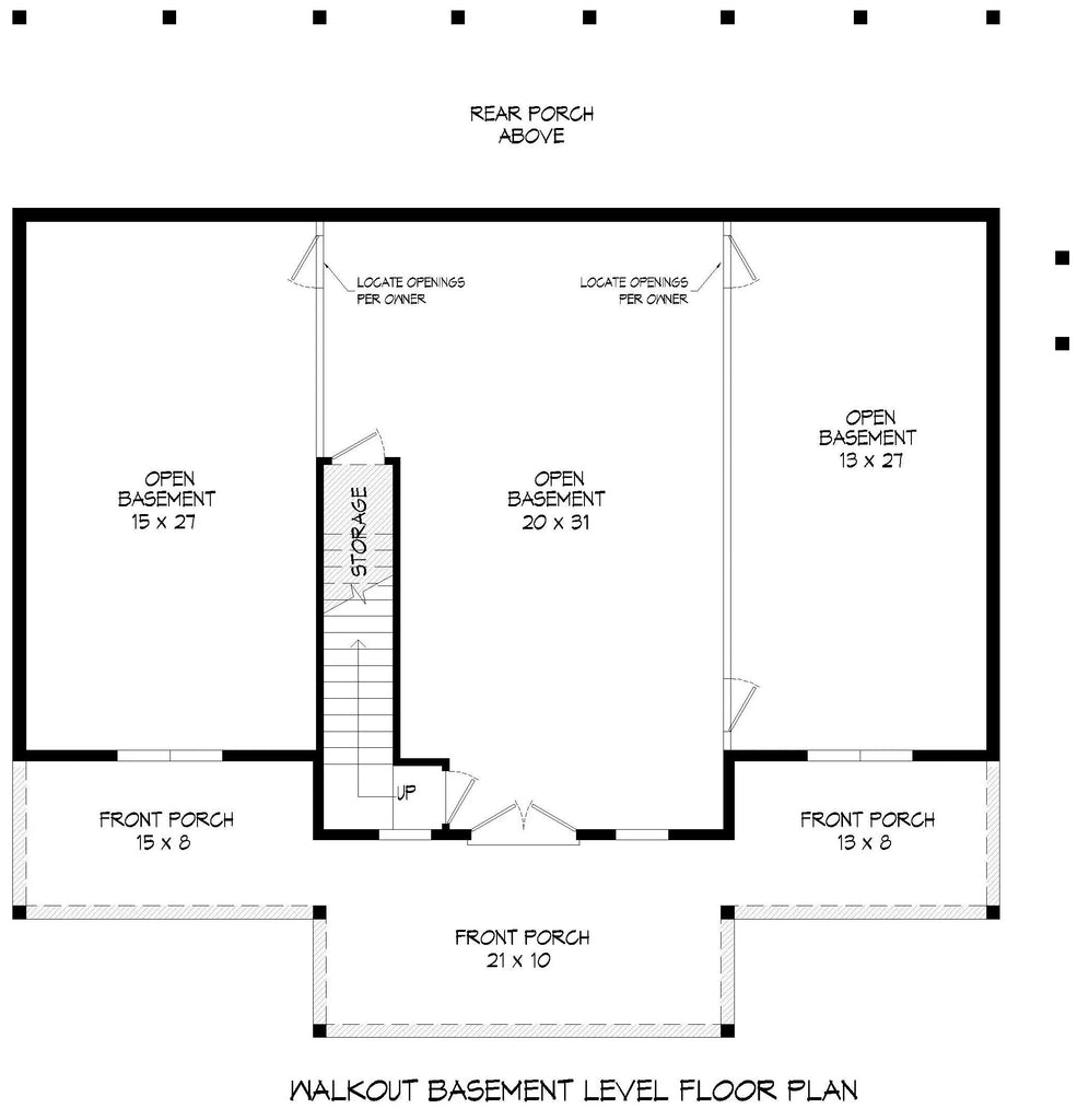 • Stairs take you down to an unfinished basement with a pair of doors taking yo to a patio covered by the porch above.