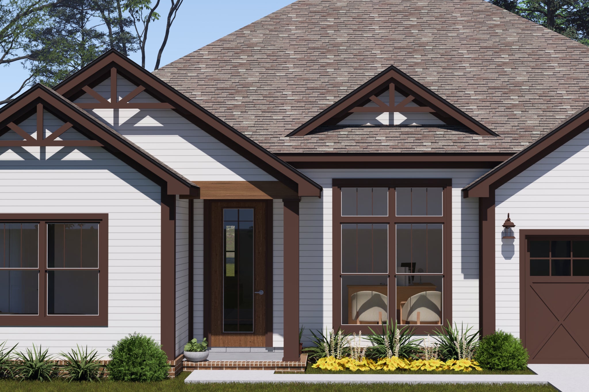 Designed with comfort and functionality in mind, this modern farmhouse plan offers 1,854 sq ft of beautifully arranged living space. The covered front porch opens into an inviting open-concept great room, dining area, and kitchen with a large island, perfect for gatherings and family meals.