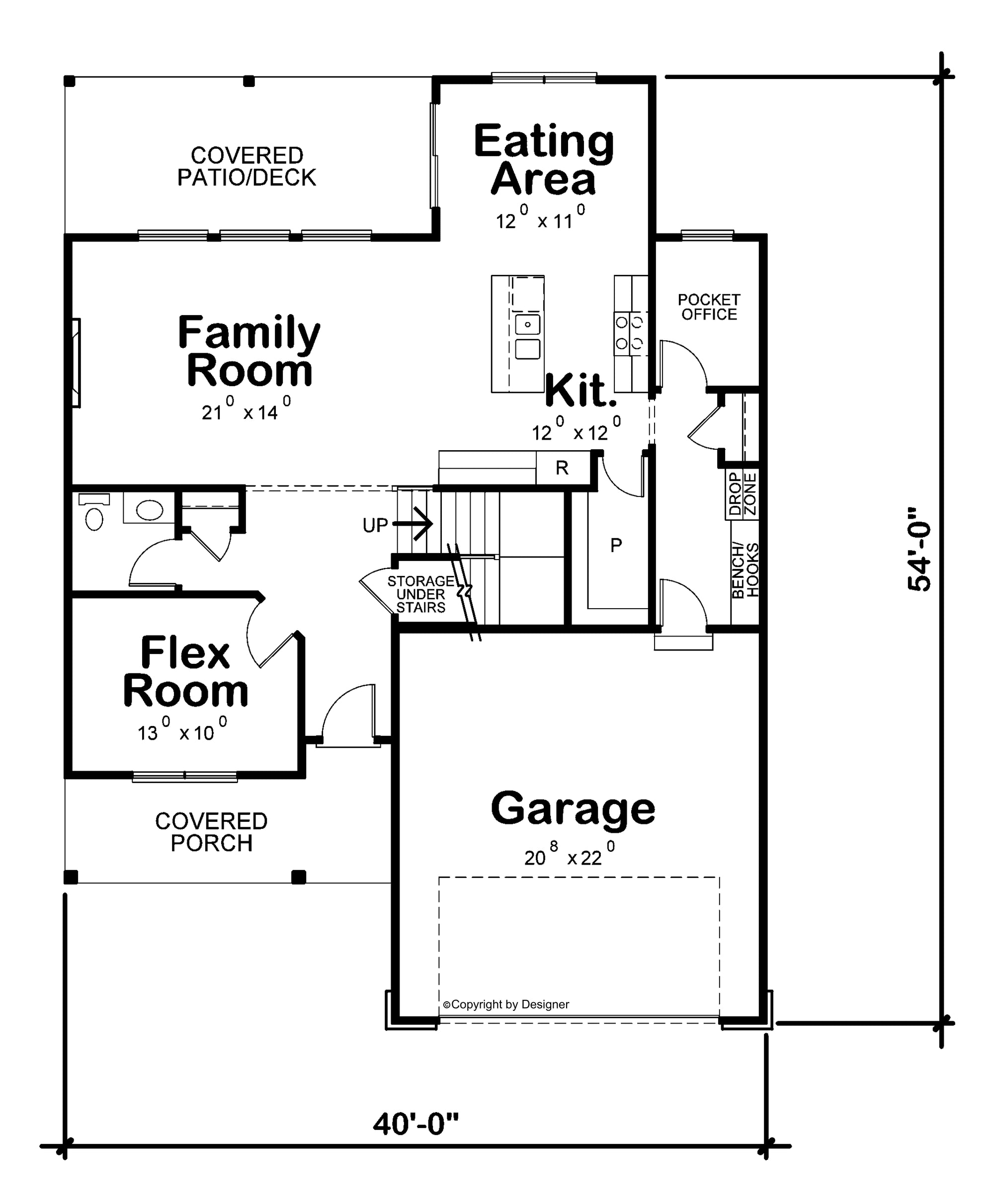 Upstairs, you'll find three well-proportioned bedrooms thoughtfully clustered for privacy, including a second-floor master suite with a private bath. A centrally located laundry room adds daily convenience, and the 9-foot ceilings on this level provide a continued sense of space. Built on a slab foundation with 2x4 wall framing, this plan balances efficiency with livability. At just 40' wide by 54' deep, it fits comfortably on modest lots while offering a flexible layout that can adapt to your lifestyle needs.