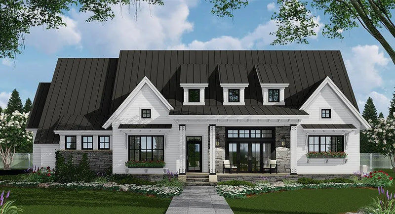 You'll find timeless beauty in this 2287 sq ft Modern Farmhouse with optional 535 sq ft bonus room over the 2-car garage. This one-story home plan has 3 bedrooms, 2 full bathrooms, and a ¾ bathroom all conveniently on the same level.