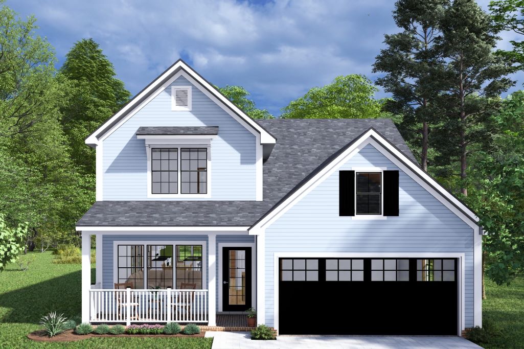 This two-story, 4-bedroom, 3.5-bathroom cottage-style home is thoughtfully designed for narrow lots. This home balances function with charm and offers 2,305 sq. ft. of living space. The main level features an open-concept layout with a 9-foot kitchen island, perfect for both meal prep and gathering. A main-floor master suite provides convenience, while a secondary master suite upstairs offers added flexibility, ideal for multi-generational living or guest accommodations.