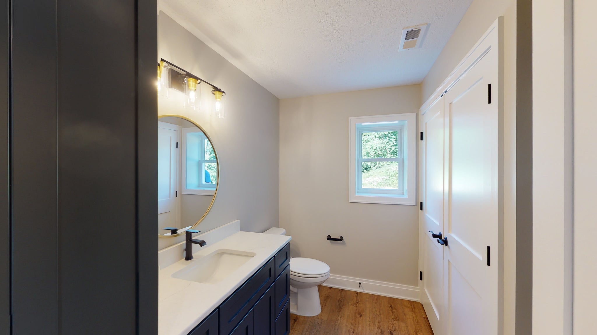 This 3,112 sq ft home blends timeless design with modern function across two levels, offering 4 bedrooms, 2.5 baths, and thoughtful spaces for family living. The 2,237 sq ft main floor includes a first-floor master suite with walk-in closets and direct laundry access, plus a split-bedroom layout for added privacy. The spacious great room features a striking two-story ceiling and fireplace, flowing seamlessly into a well-appointed kitchen with a large island and walk-in pantry. A formal dining room, mudroom, and home office/den provide everyday practicality, while the covered front porch and rear deck offer inviting outdoor living spaces.