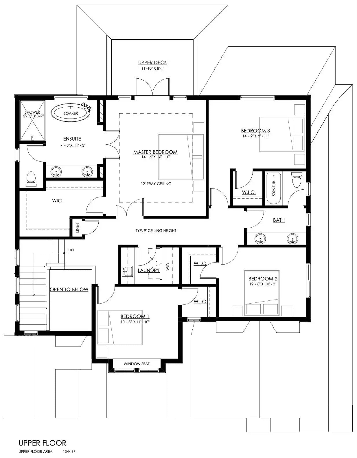 Upstairs, the 1,344 sq. ft. second floor is designed for privacy and comfort. The master suite is a true retreat, with a private deck located just outside the room, offering tranquil views and a peaceful escape. The master suite also includes a large walk-in closet and a spa-like bathroom. The remaining bedrooms are clustered together for a cozy, shared space with easy access to the second-floor laundry room.