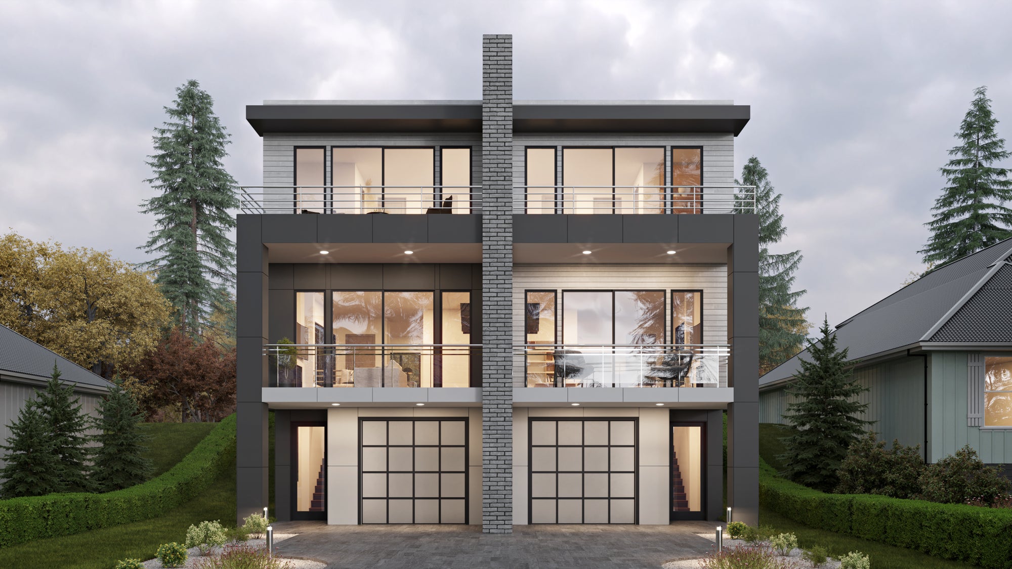 Experience luxury and efficiency in this stunning Modern duplex home, where each mirror-image unit offers 3 spacious bedrooms, 2.5 baths, and a tandem 2-car garage. With 1,944 square feet of heated living space per unit, the open-concept main floor showcases a seamless flow between the kitchen, dining, and living areas—perfect for entertaining. A fireplace adds cozy charm, while both front and rear decks extend your living space outdoors. The walkout basement includes a mechanical/storage area and provides convenient front-load garage access.