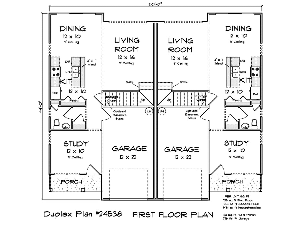 This 1,491 sq. ft. duplex-style multifamily home offers a stylish and efficient layout ideal for investment, multi-generational living, or shared ownership. Spread across two stories, each unit features a smart mix of privacy and shared space. The first floor (723 sq. ft.) includes a welcoming keeping/family room, a formal dining area, and a home office or study — all perfect for modern lifestyles. A front-load 2-car garage adds convenience and curb appeal, while the covered front porch (120 sq. ft.) enhances the home's welcoming charm.